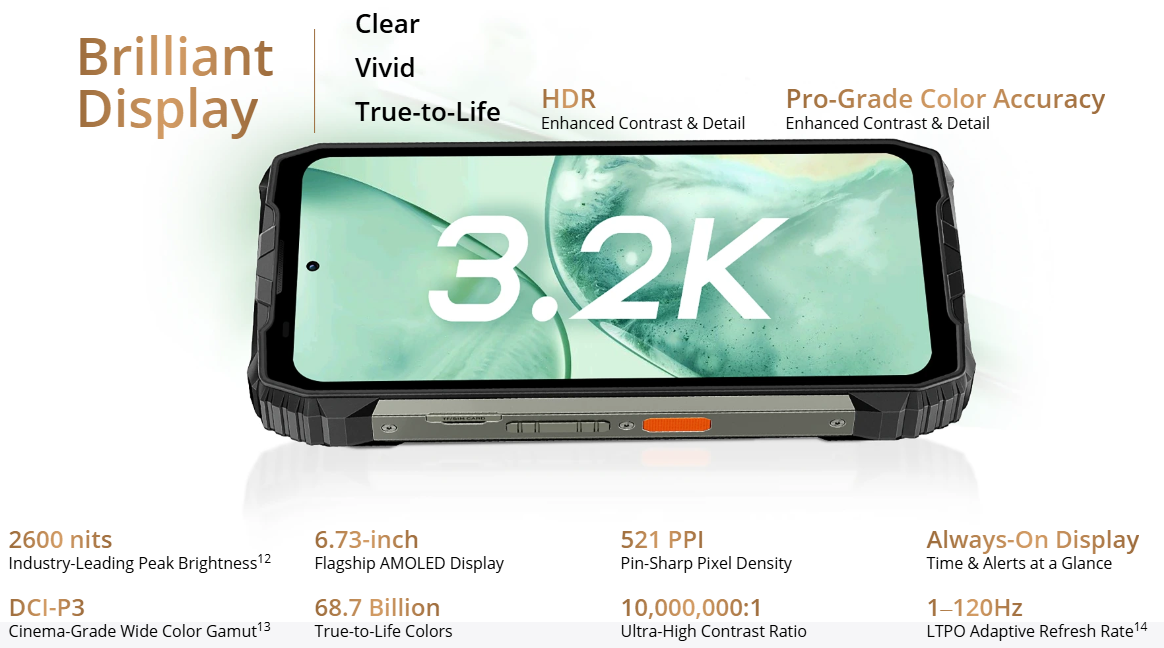 Afisaj: 6.73 Inch 3.2K AMOLED (1440x3200)
