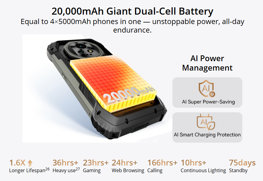 Capacitate: 20.000mAh (Autonomie de neegalat)