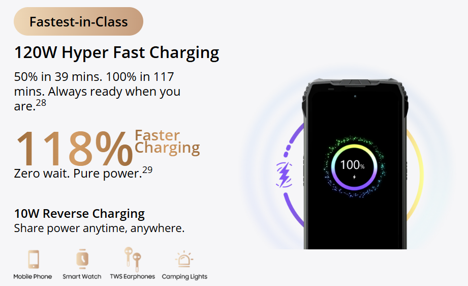 | Baterie | 20,000mAh; Incarcare Hiper Rapida 120W |