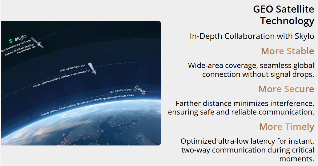 | Altele | Difuzoare Stereo Duale Smart-K BOX 2W, Mesagerie Vocala prin Satelit (GEO), Telecomanda Infrarosu, Lanterna Camping (467lm), eSIM, Buton Personalizabil, Asistent AI (Gemini AI 2.0) |