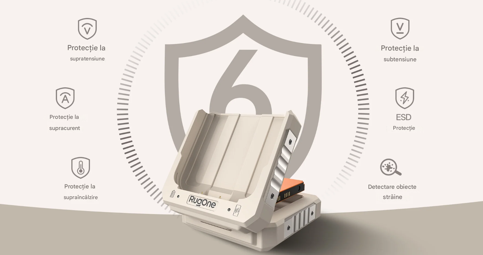 | Caracteristici | Incarcare Pogo Pin Max. 28W Incarcator pentru telefon si baterie detasabila Suport reglabil pana la 60° Spatiu de stocare pentru bateria de rezerva Pernite anti-alunecare |