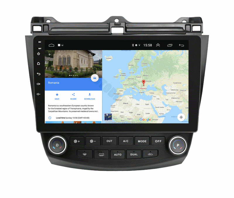 Navigație Android Dedicată pentru Honda Accord 7 între 2005 şi 2008. Acest multimedia Android prezintă funcţii complexe, precum Internet, GPS online şi offline, Bluetooth, USB, Auxiliar, Card SD, Posibilitate Camera Marşarier, Camera Trafic DVR.