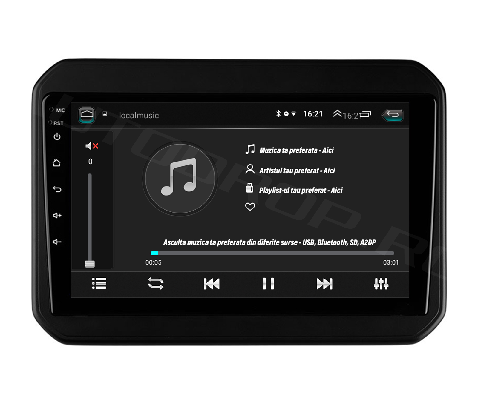 Funcție RDS ce permite afișajul în timp real al frecvenței Radio și denumirea acestuia. Odată salvate posturile principale, aplicația radio o să le recunoască automat după denumirea lor.