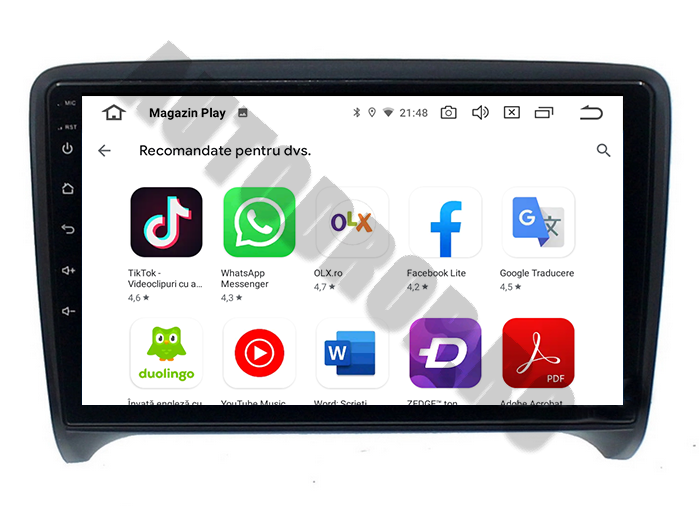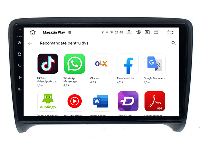 Aplicații Playstore, precum Youtube, Waze, Sygic, Google Maps, Facebook, WhatsAPP, Netflix, TV/Radio Online, Google Voice Control, Instagram, etc.