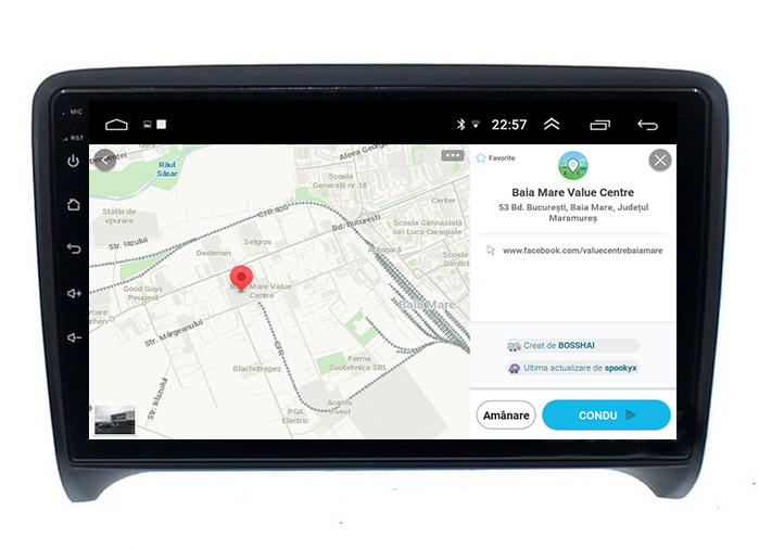 Posibilitatea de a selecta între diverse aplicații de navigatie, precum Waze, iGO Maps, Google Maps Offline,Sygic.