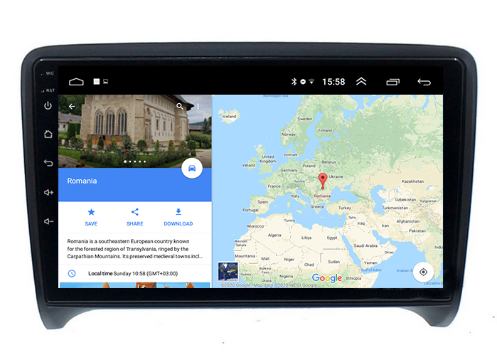 Suport online și offline pentru Navigatia GPS, susține Hărti 3D și îndrumare vocală în diverse limbi disponibile, majoritatea deja setate în limbă romană.