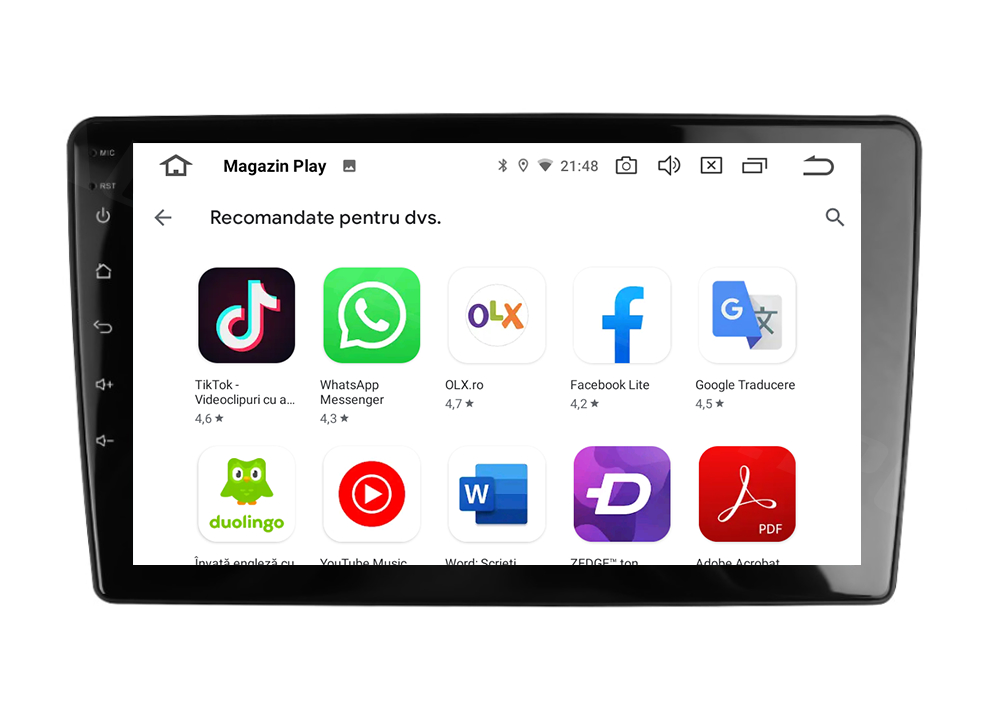Aplicații Playstore, precum Youtube, Waze, Sygic, Google Maps, Facebook, WhatsAPP, Netflix, TV/Radio Online, Google Voice Control, Instagram, etc.