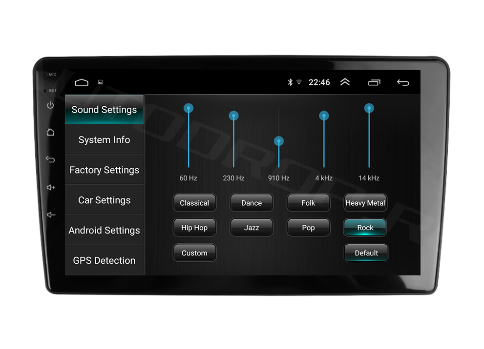 Sistem Operare Android 10, RAM: 1 GB, MEMORIE INTERNĂ: 16GB, CPU: Mediatek 8227L 1,3GHZx4 , Cip radio de inaltă calitate IC: NXP 6851 și Amplificator IC AC7315.