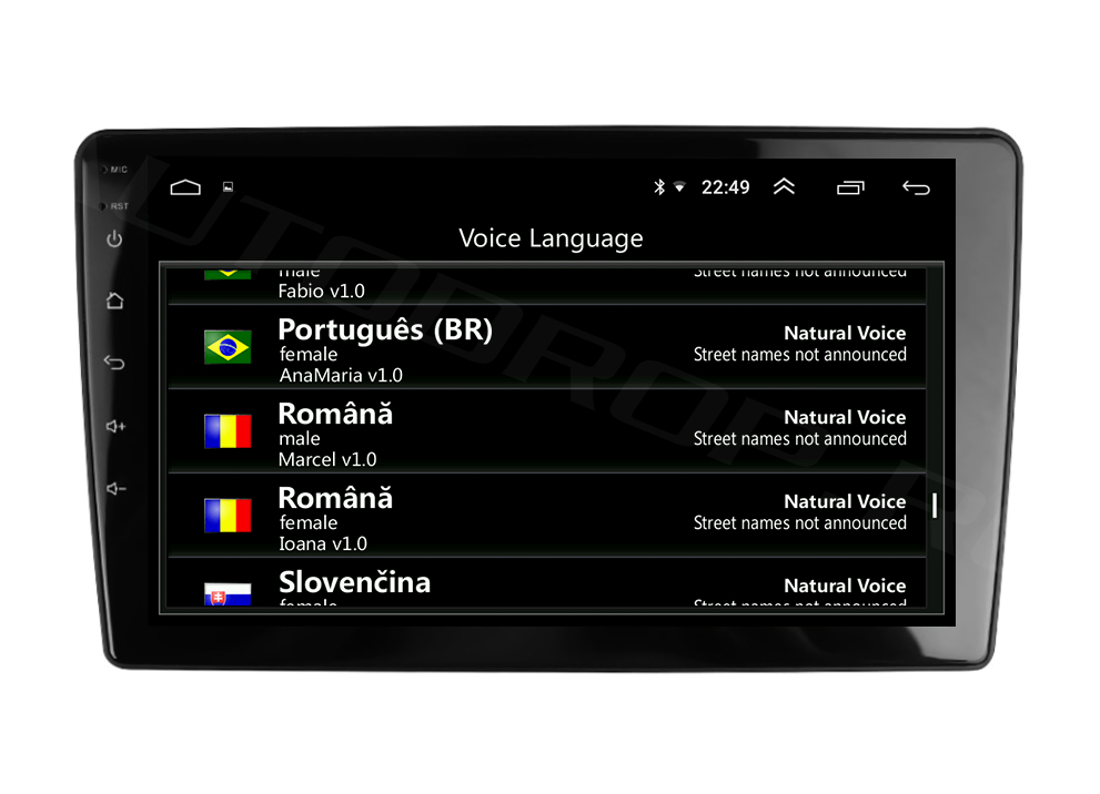 Suport online și offline pentru Navigatia GPS, susține Hărti 3D și îndrumare vocală în diverse limbi disponibile, majoritatea deja setate în limbă romană.