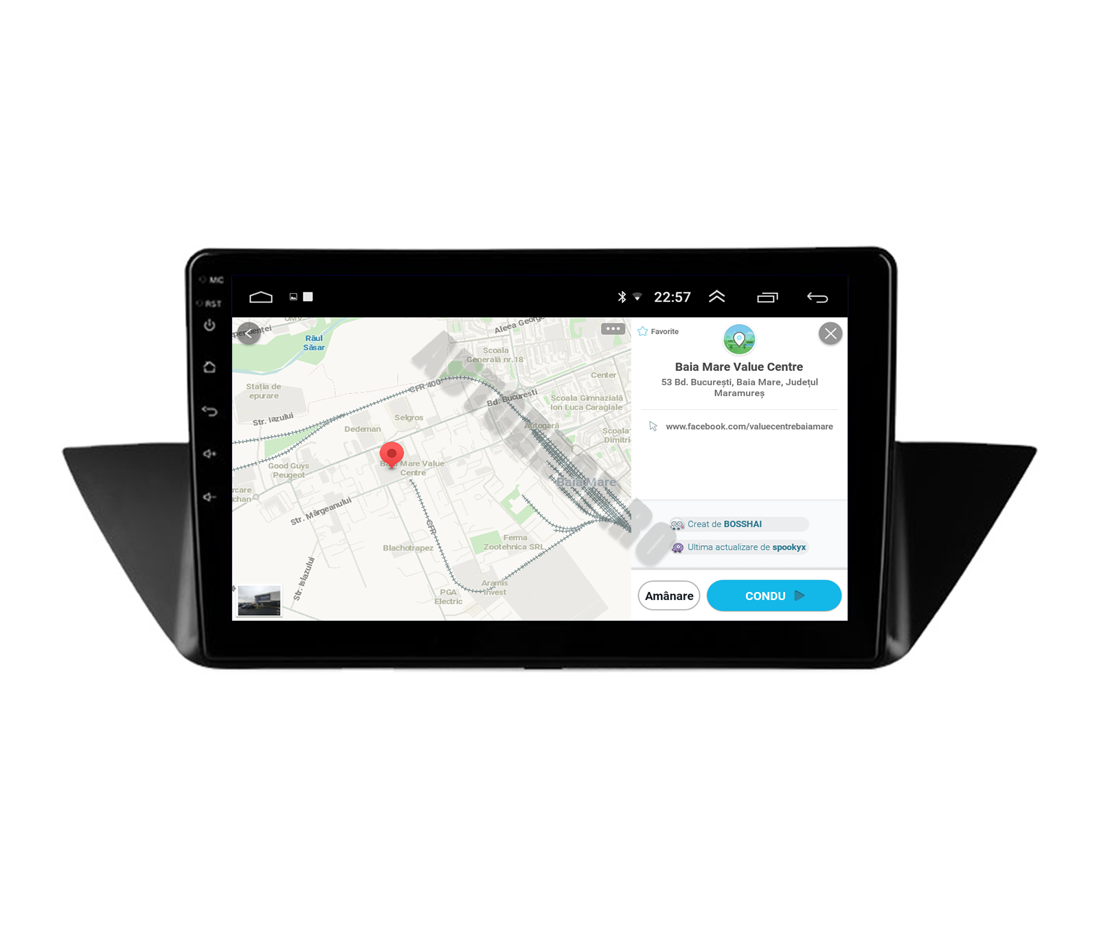 Posibilitatea de a selecta între diverse aplicații de navigatie, precum Waze, iGO Maps, Google Maps Offline,Sygic.