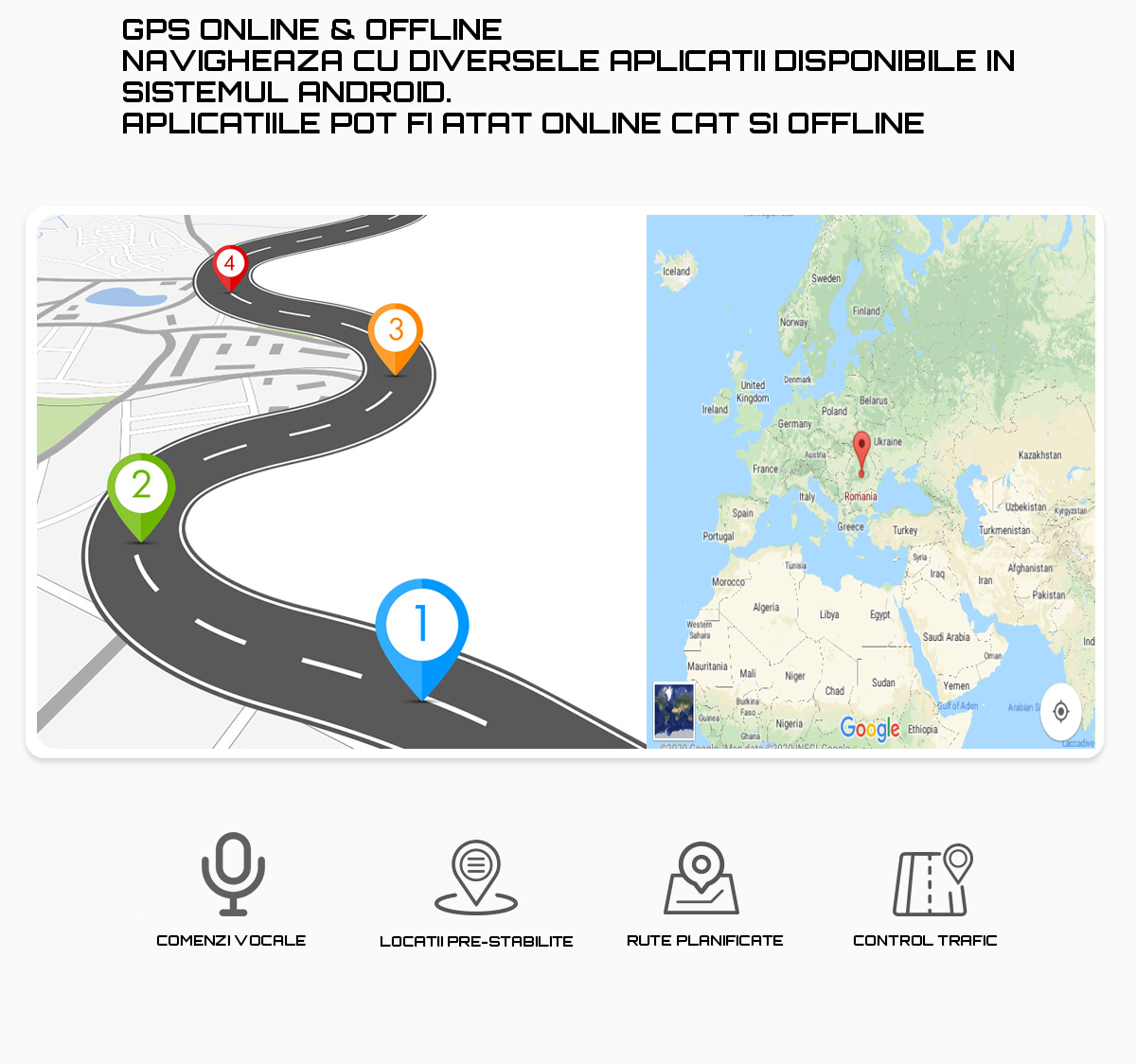 ● Seria AD-BGE permite utilizarea GPS atat Online cat si Offline, prin aplicatiile Android precum Waze,