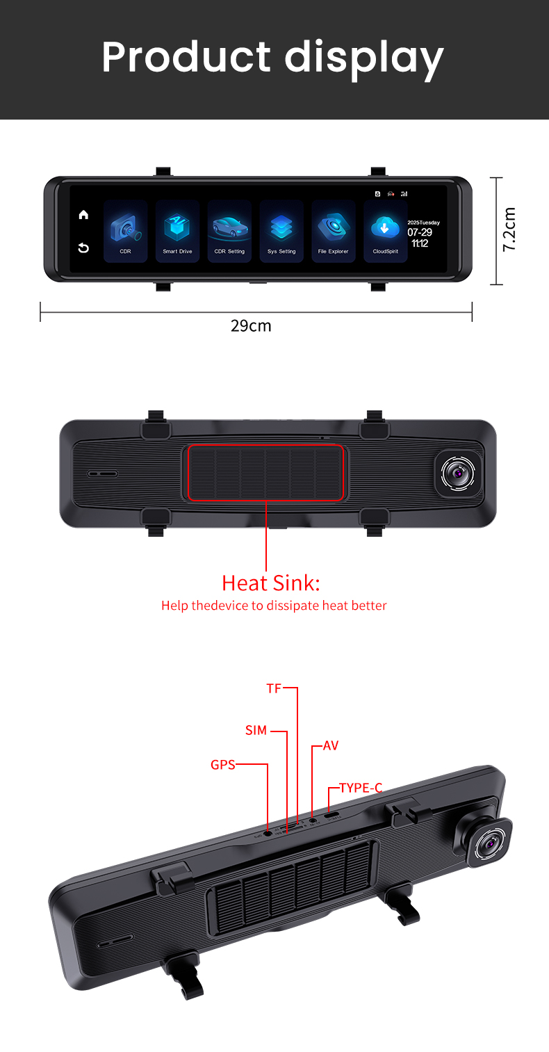Oglinda Retrovizoare cu Camera Auto iSEN V7, Ecran Tactil 11.26", 4K 25fps Fata & 1K Spate, Acces de la distanta 4G, GPS+Beidou, G-senzor, ADAS, BSD, Time-lapse, Monitorizare Parcare