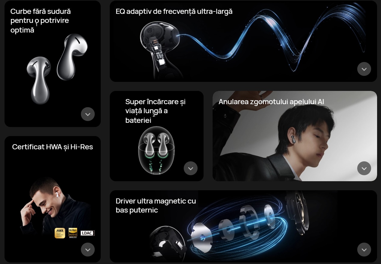 HUAWEI FreeBuds 5 ajusteaza sunetul tinand cont de potrivire, starea de purtare si nivelul volumului - de la 100 Hz la 2000 Hz - pentru a oferi o experienta de ascultare personalizata, plina de pasiune si de vioiciune.