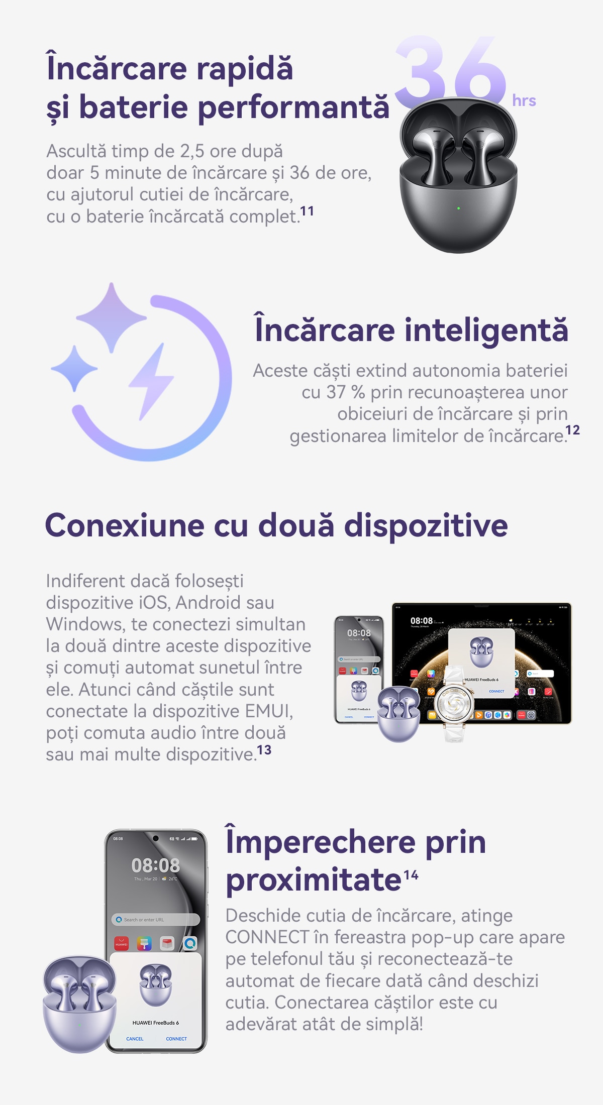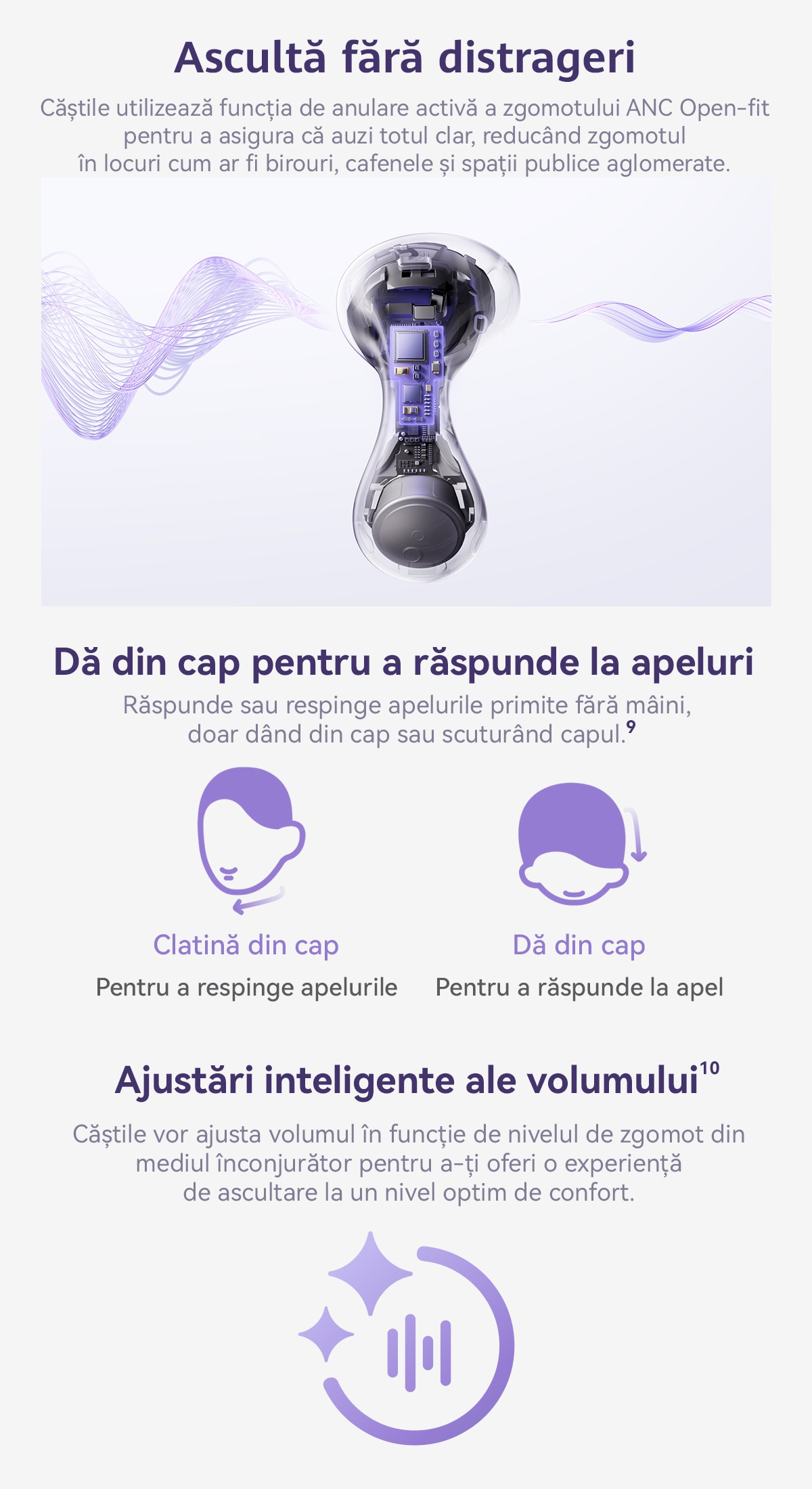 | Continut pachet | 1 x Manual 1 x Carcasa incarcare 1 x Pereche casti 1 x Cablu USB C 2 x Ear tips |