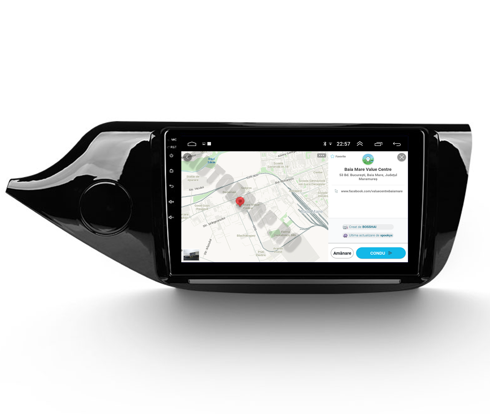 Posibilitatea de a selecta între diverse aplicații de navigatie, precum Waze, iGO Maps, Google Maps Offline,Sygic.