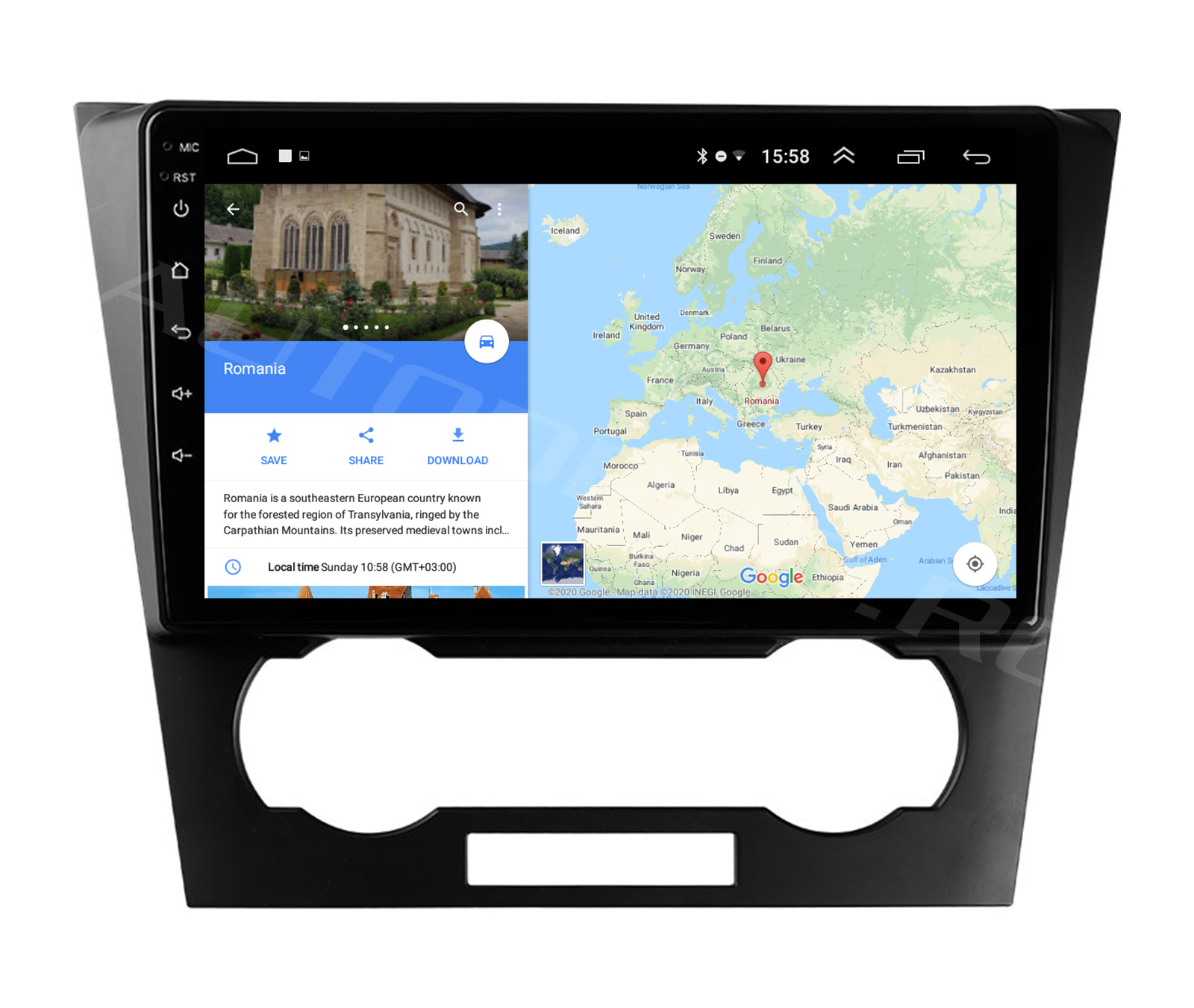 Suport online și offline pentru Navigatia GPS, susține Hărti 3D și îndrumare vocală în diverse limbi disponibile, majoritatea deja setate în limbă romană.