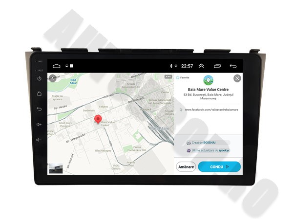 Suport online și offline pentru Navigatia GPS, susține Hărti 3D și îndrumare vocală în diverse limbi disponibile, majoritatea deja setate în limba romană.