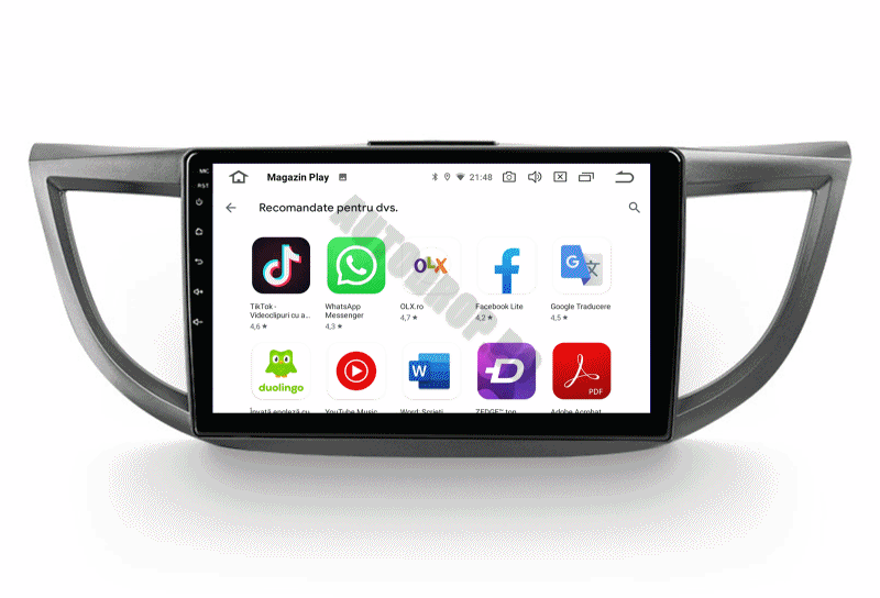 Aplicații Playstore, precum Youtube, Waze, Sygic, Google Maps, Facebook, WhatsAPP, Netflix, TV/Radio Online, Google Voice Control, Instagram, etc.