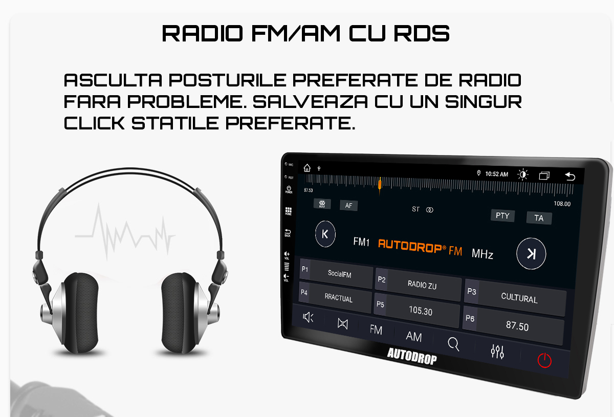 ● Functia RADIO FM/AM cu afisaj RDS, salvare posturi radio preferate dupa denumirea lor.