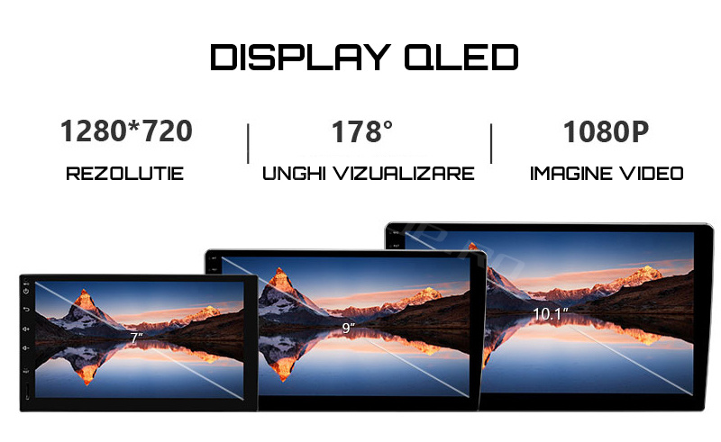 ● Ecran QLED cu rezolutie 1280x720, margini curbate si tehnologie 2.5D