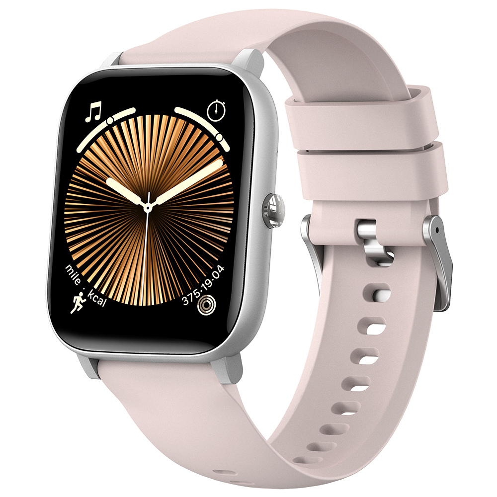 iSEN C09 Smartwatch, Silver, Pink TPU Strap, 1.85" TFT, Heart Rate, Blood Pressure, Blood Oxygen (SpO2), ECG, 7 Sport Modes, Call & Message Notifications, 200 mAh, Android 5.0 / iOS 10.0