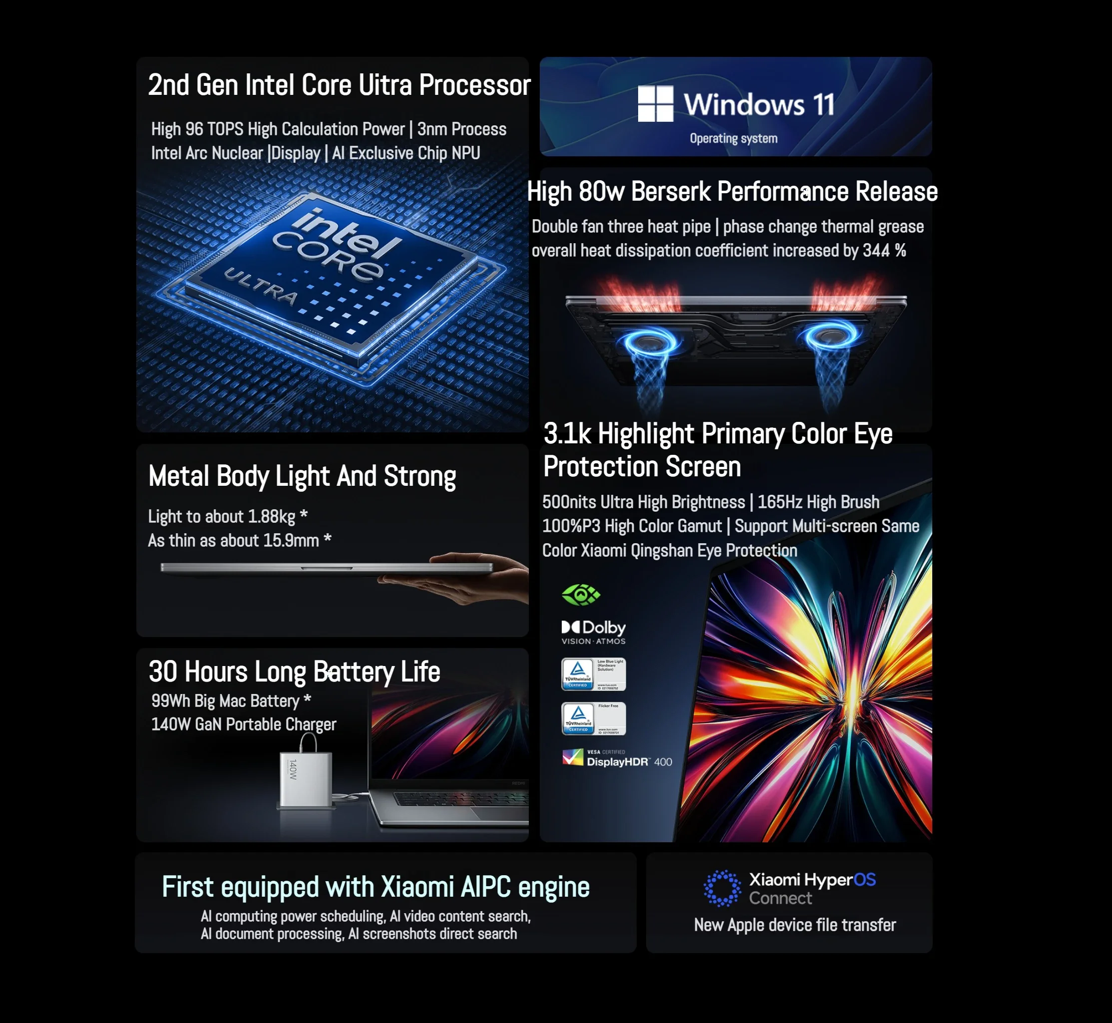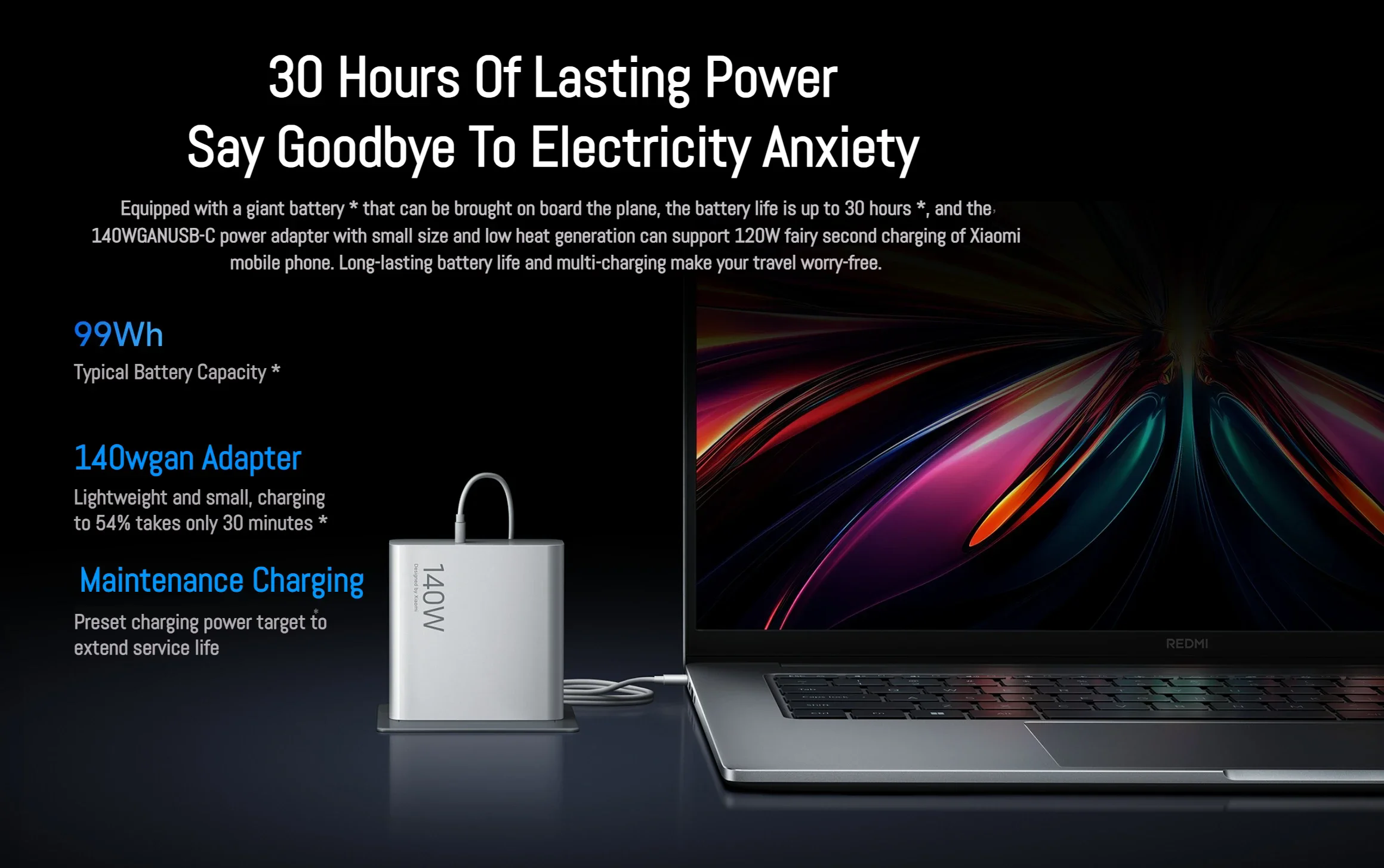 | Battery | 80Wh, up to 27 hours video playback |