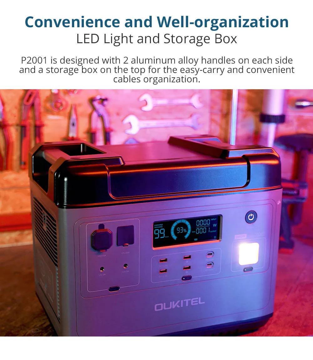 | 1x Oukitel P21001E portable charging station 1x Power cord socket 1x Car charger 1x Cable for solar charging 1x User Manual |