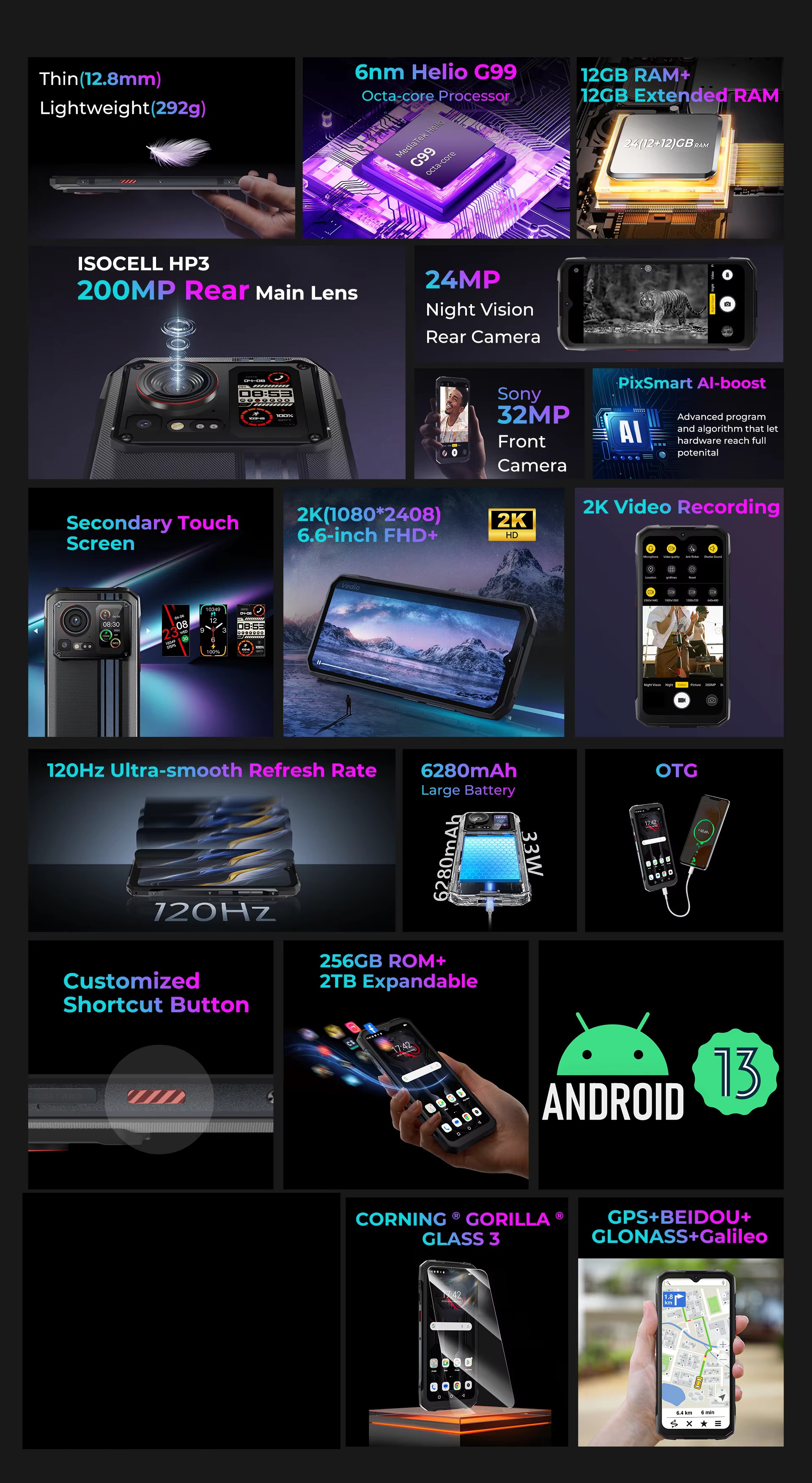 Powered by the dual advanced IR sensors and 24MP lens, the HOTWAV Cyber 15 guarantees clear and precise imaging, even in the darkest environments. whether you're venturing into caves or studying nocturnal wildlife, Cyber 15 stands as your reliable companion.