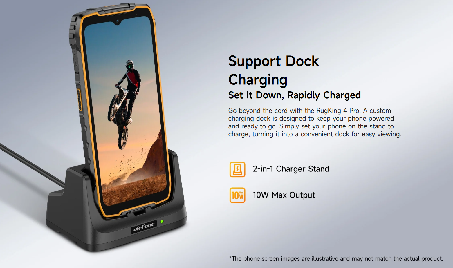 | 1x Mobile Phone Ulefone RugKing 4 Pro 1x AC Power Charger (18W) 1x Type-C to Type-C Data Cable (100cm) 1x Protective Film (Pre-installed) 1x Tempered Glass Screen Protector 1x Lanyard 1x SIM Needle |
