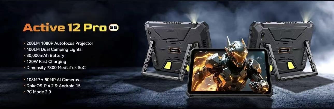 Turn any surface into a cinema screen with the Blackview Active 12 Pro, the only tablet in its class equipped with a built-in Full HD projector, 200 lumens, fast autofocus and exceptional image quality. Ideal for business presentations, movie watching or outdoor entertainment – no cables, no external screens!