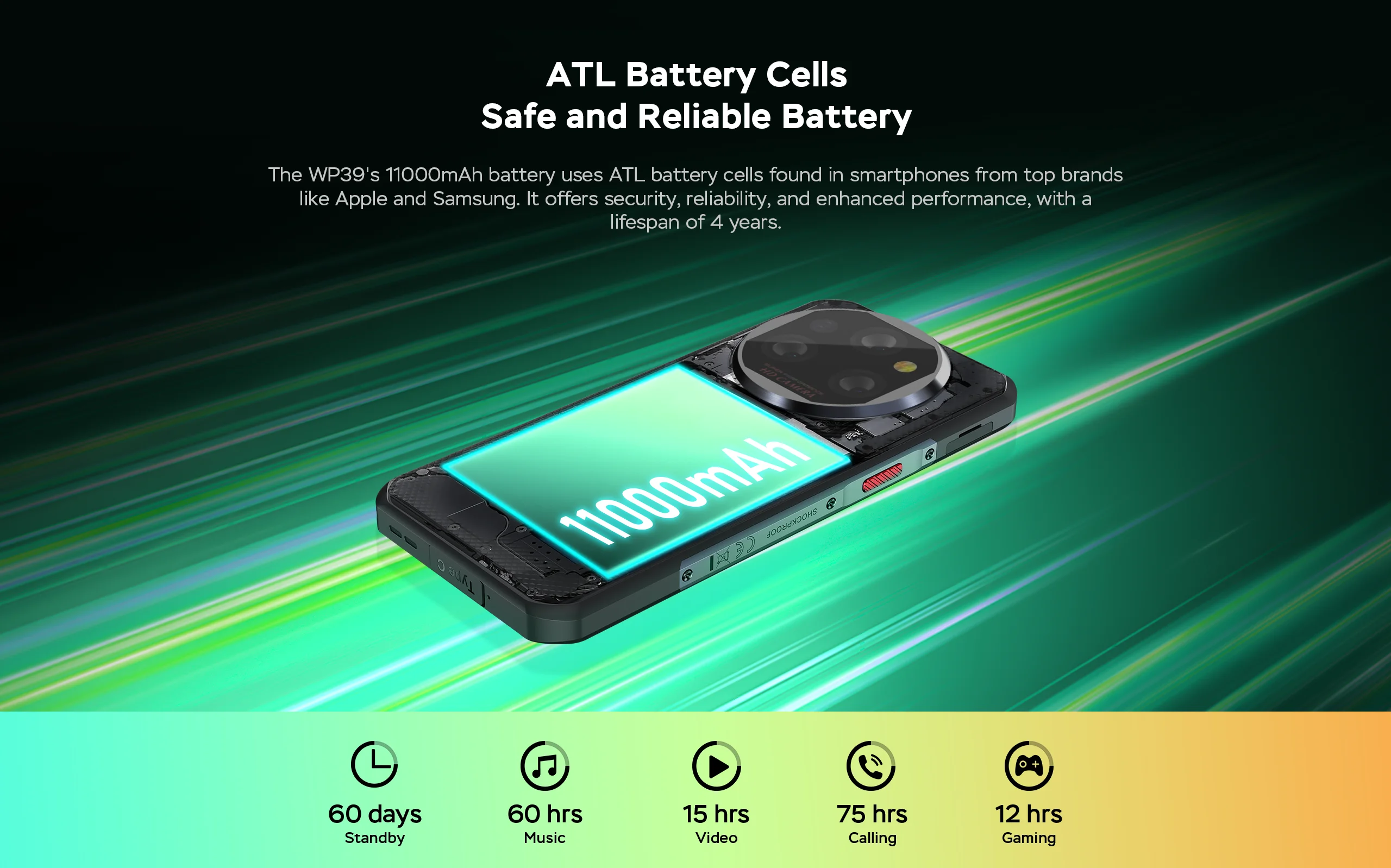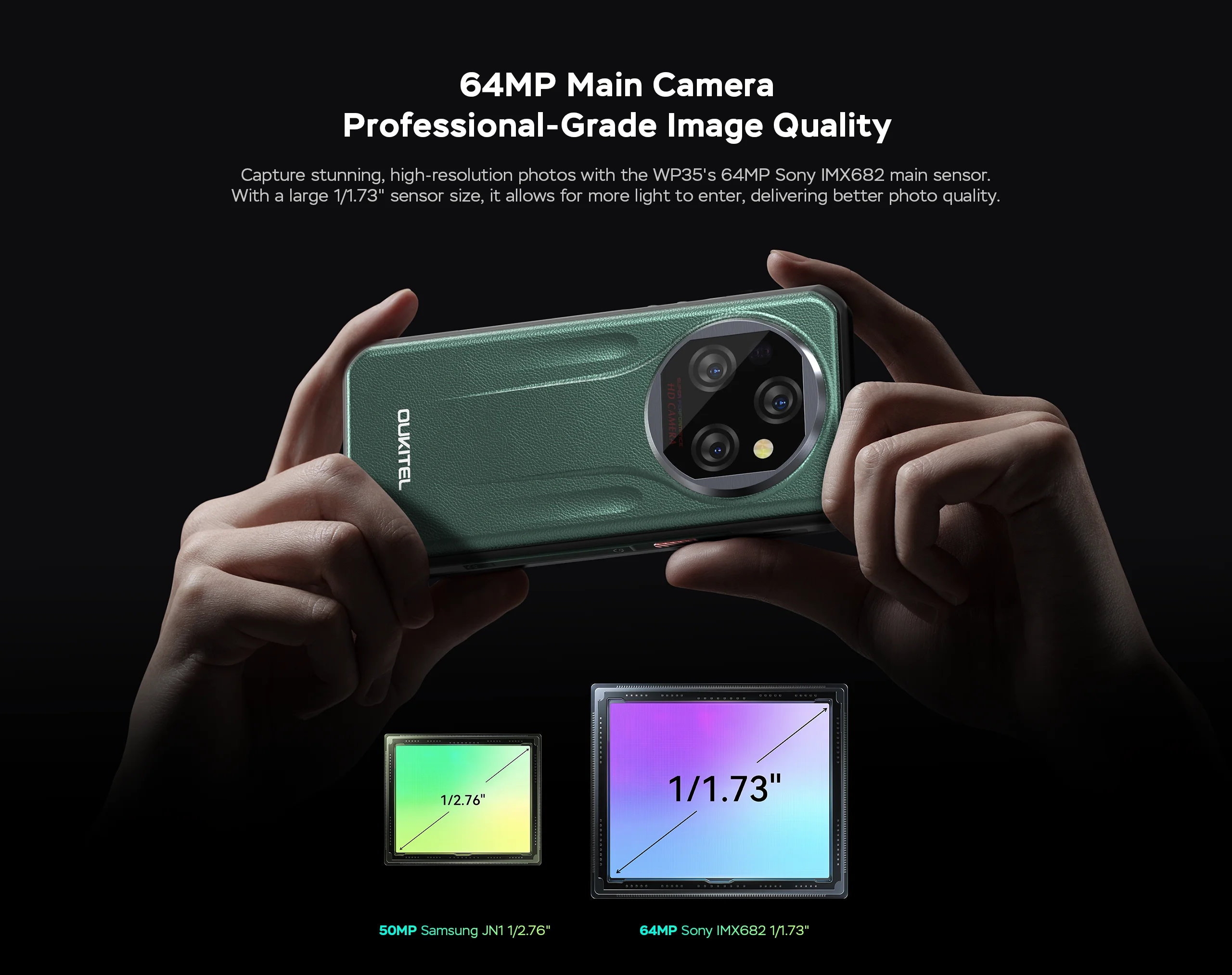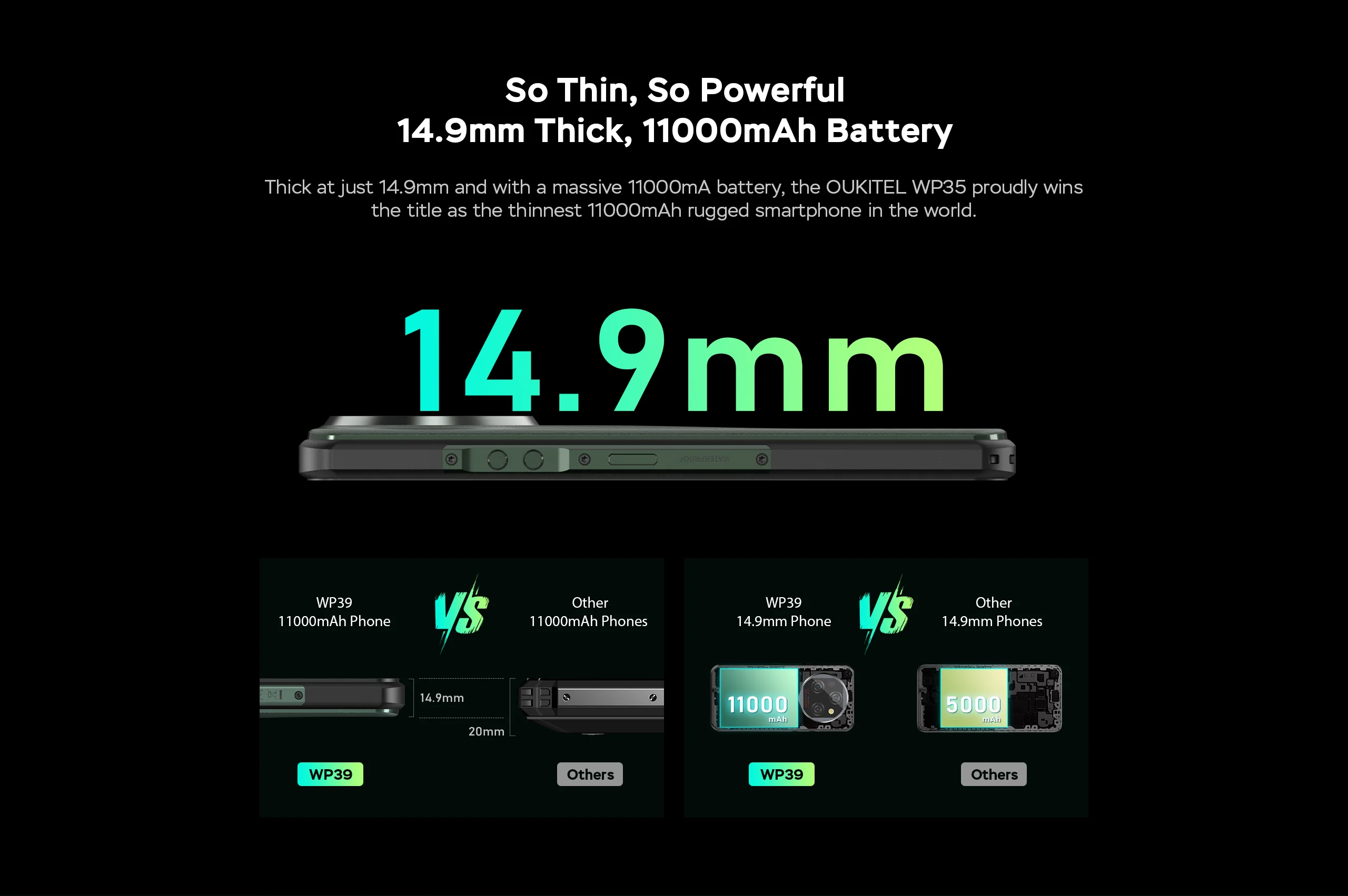 Mobile Phone Oukitel WP39 Green, 5G, 6.60" FHD+, 24GB RAM (6GB + 18GB expandable), 256GB ROM, Android 14, MTK Dimensity 6100+, NFC, Face Unlock, Fingerprint, 64MP, 11000mAh, Dual SIM