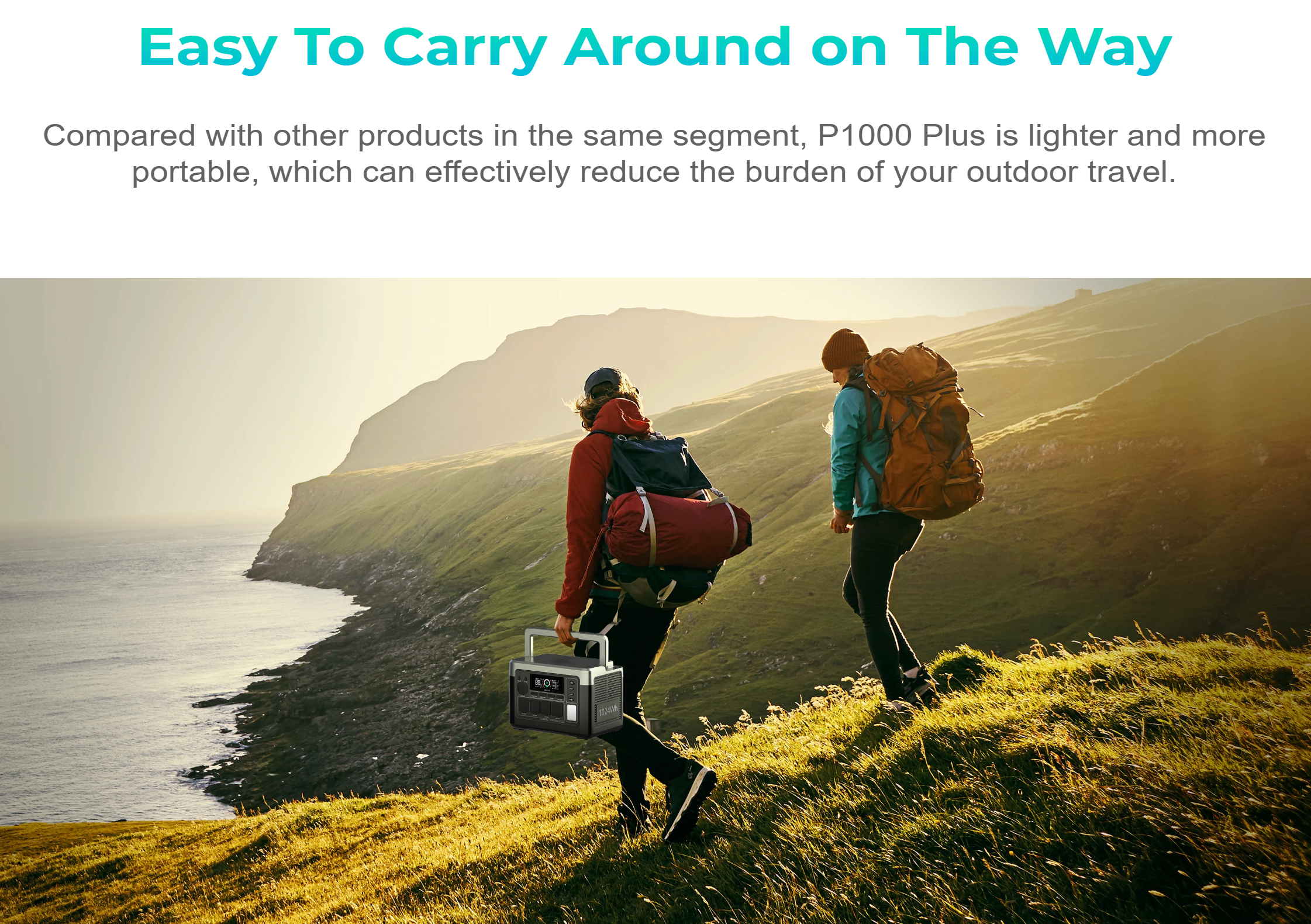 Statie de alimentare portabila / baterie externa Oukitel P1000 Plus Negru, Ecran LCD, 1800W, 1024 Wh, LiFePO4, functie UPS <10ms, Incarcare Max 1200W
