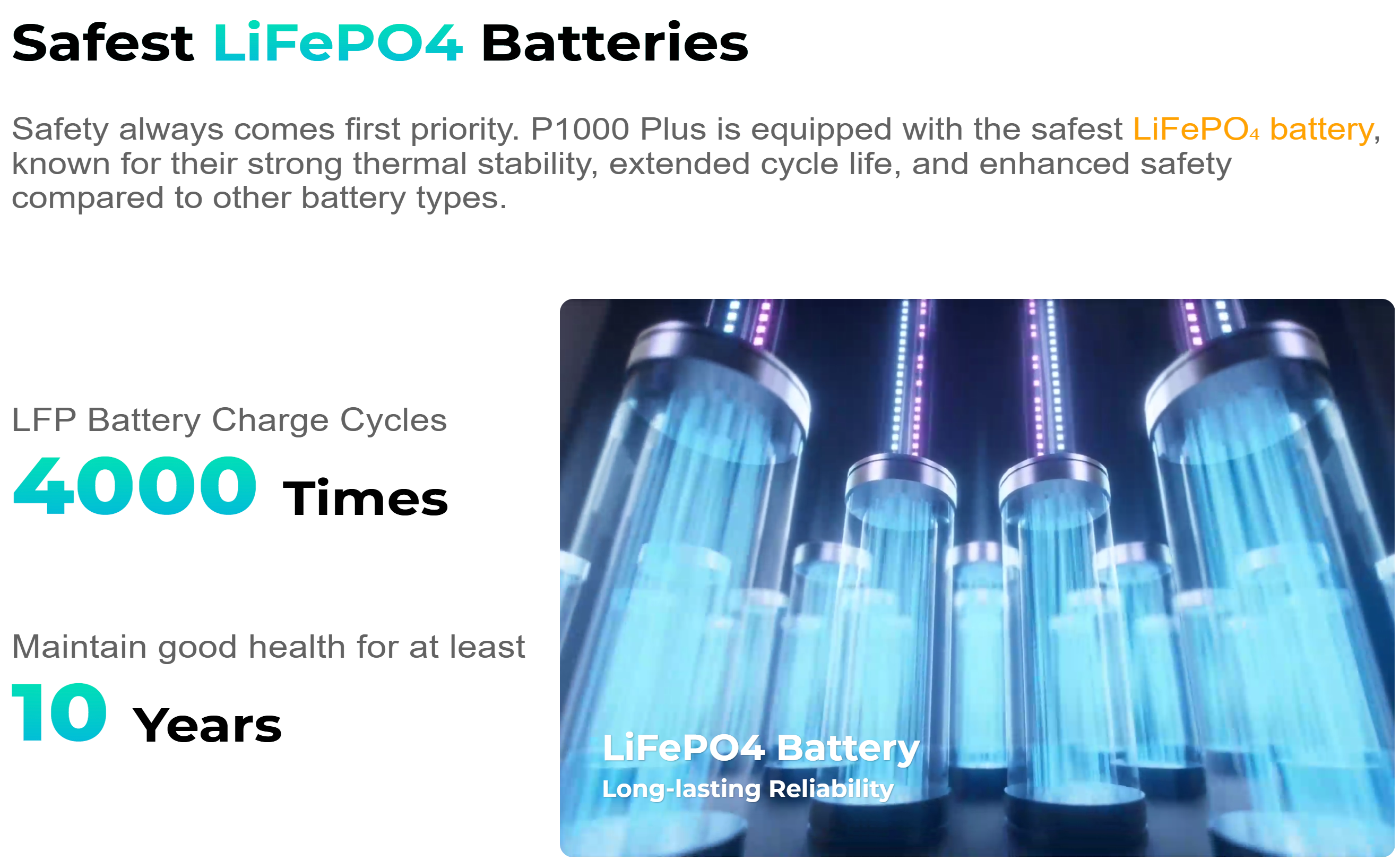 | Capacitate baterie | 1024Wh LiFePO₄ (4000 cicluri, durata de viata 10 ani) |