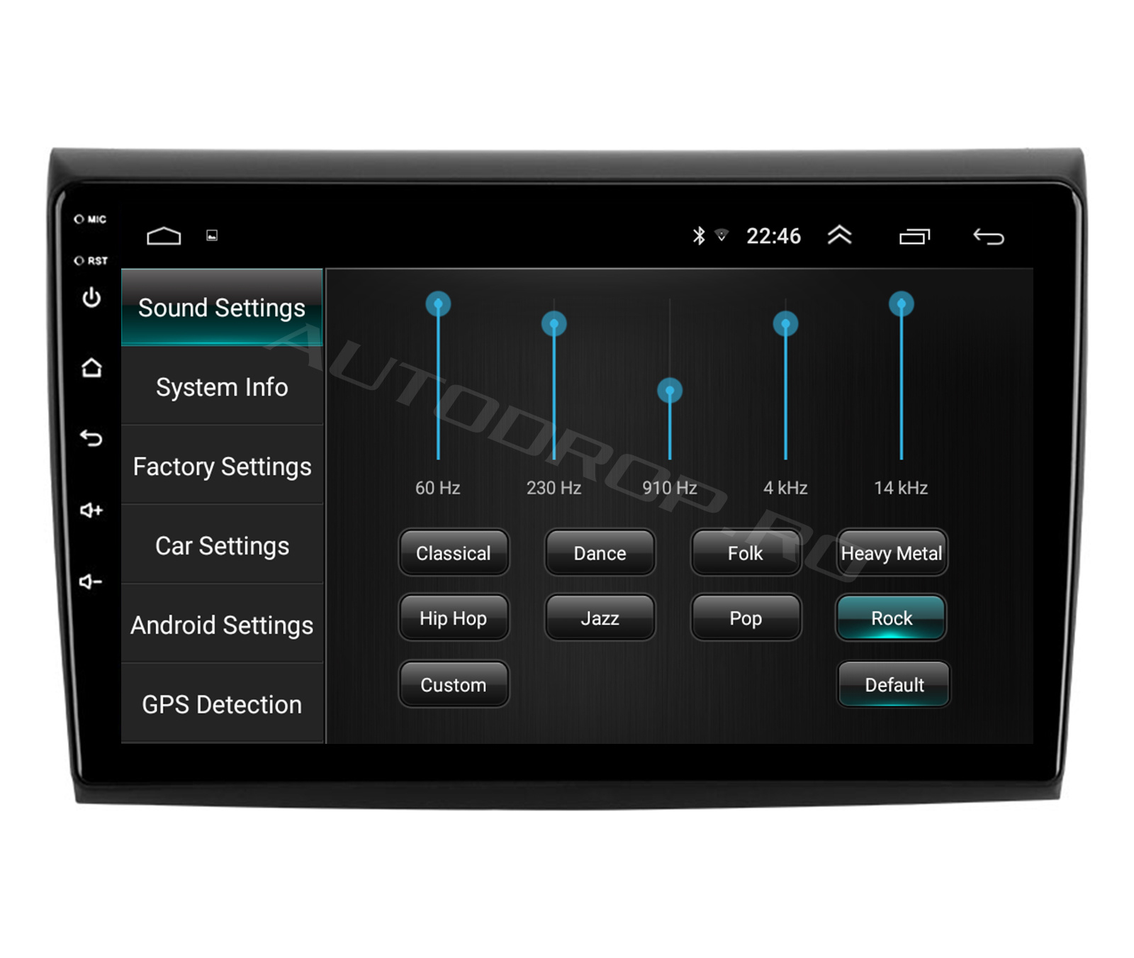 Sistem Operare Android 10, RAM: 1 GB, MEMORIE INTERNĂ: 16GB, CPU: Mediatek 8227L 1,3GHZx4 , Cip radio de inaltă calitate IC: NXP 6851 și Amplificator IC AC7315.