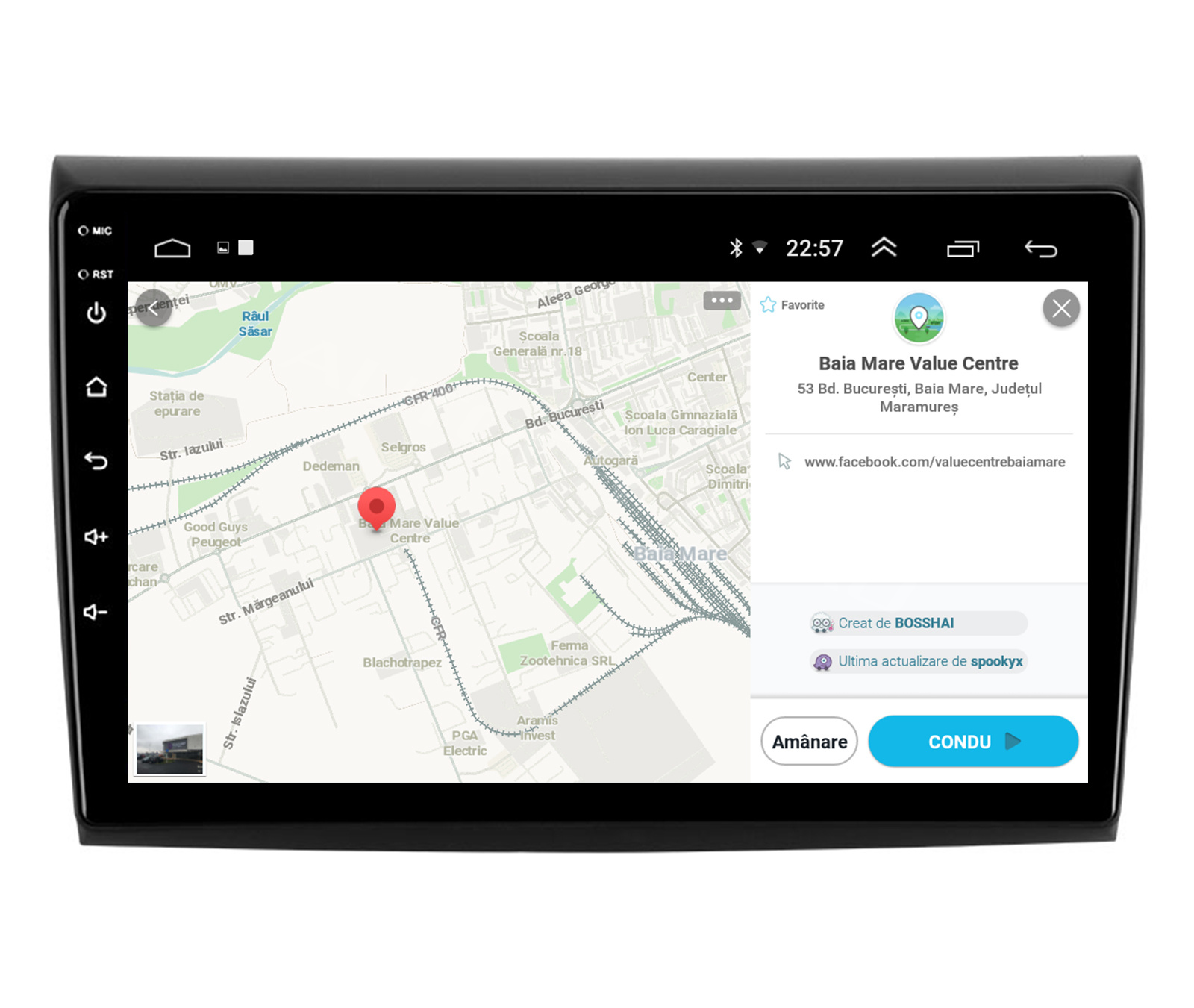 Suport online și offline pentru Navigatia GPS, susține Hărti 3D și îndrumare vocală în diverse limbi disponibile, majoritatea deja setate în limbă romană.