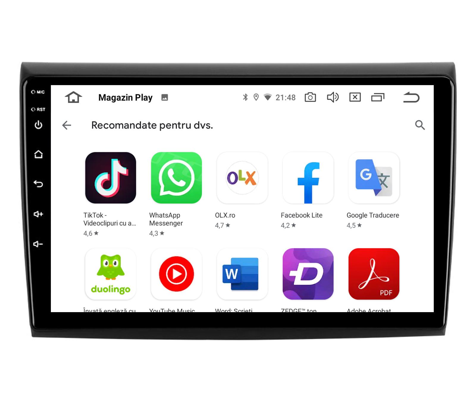 Aplicații Playstore, precum Youtube, Waze, Sygic, Google Maps, Facebook, WhatsAPP, Netflix, TV/Radio Online, Google Voice Control, Instagram, etc.