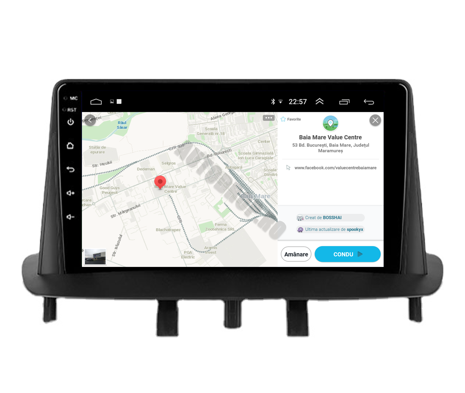 Posibilitatea de a selecta între diverse aplicații de navigatie, precum Waze, iGO Maps, Google Maps Offline,Sygic.