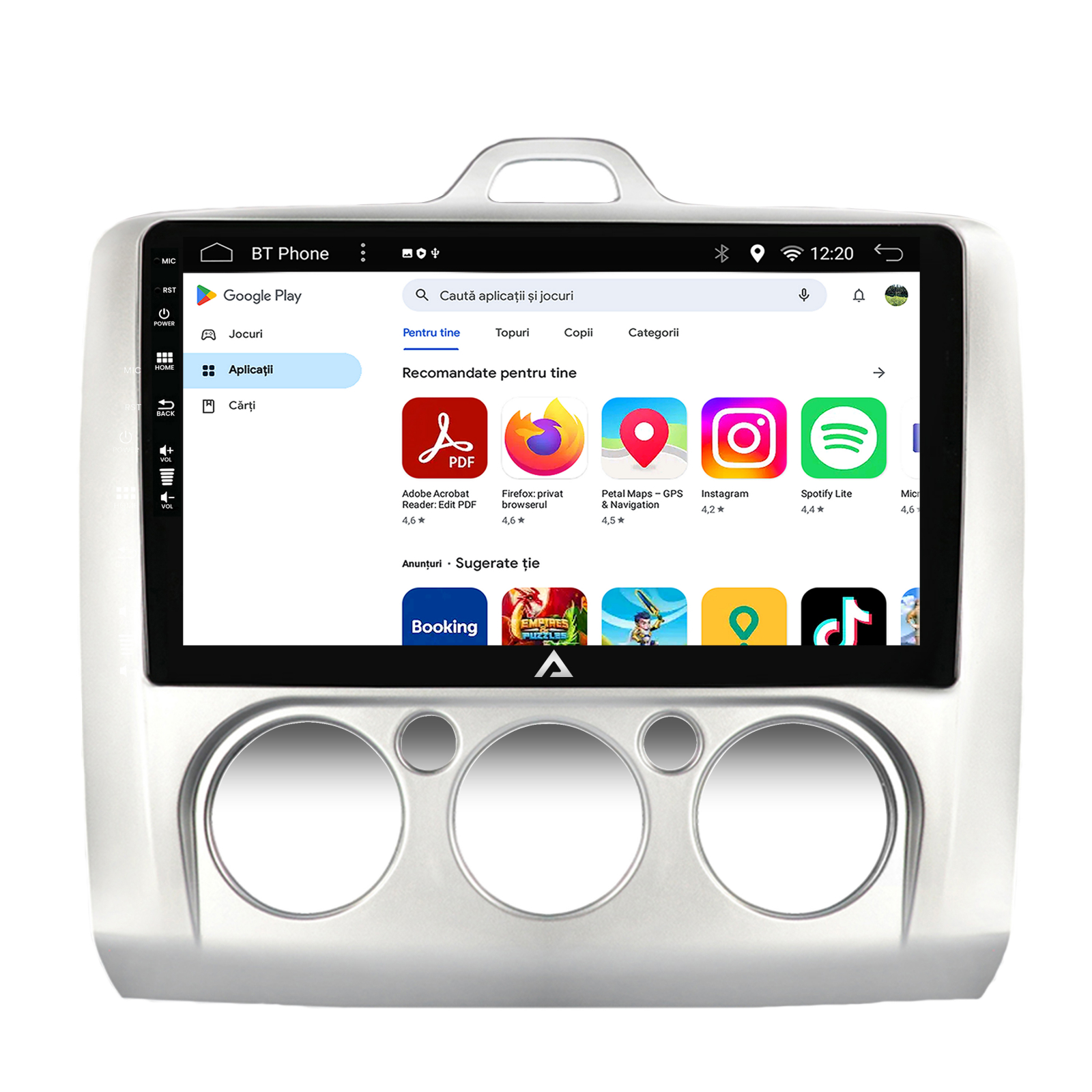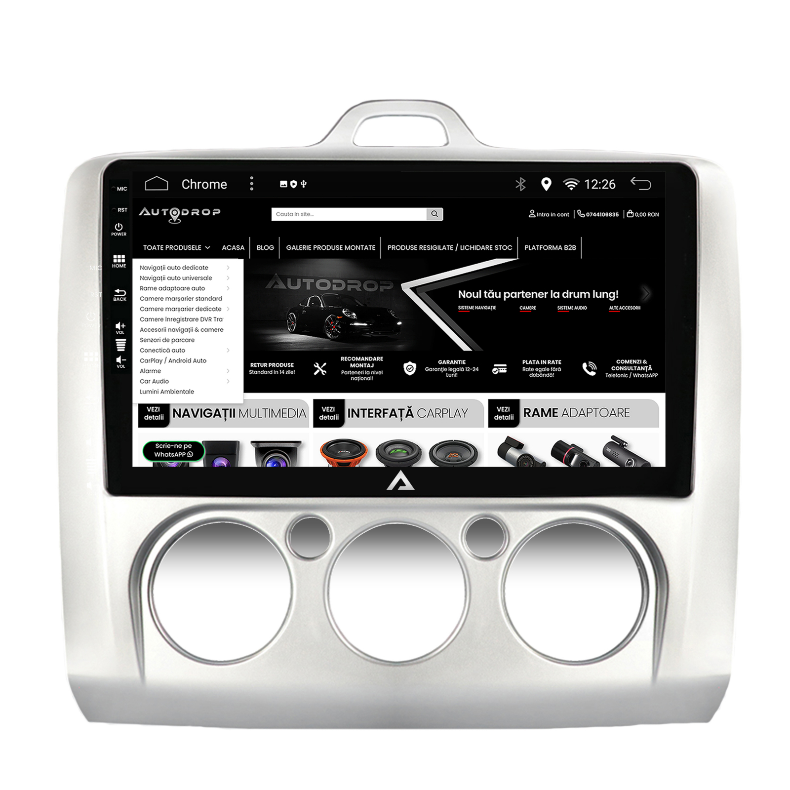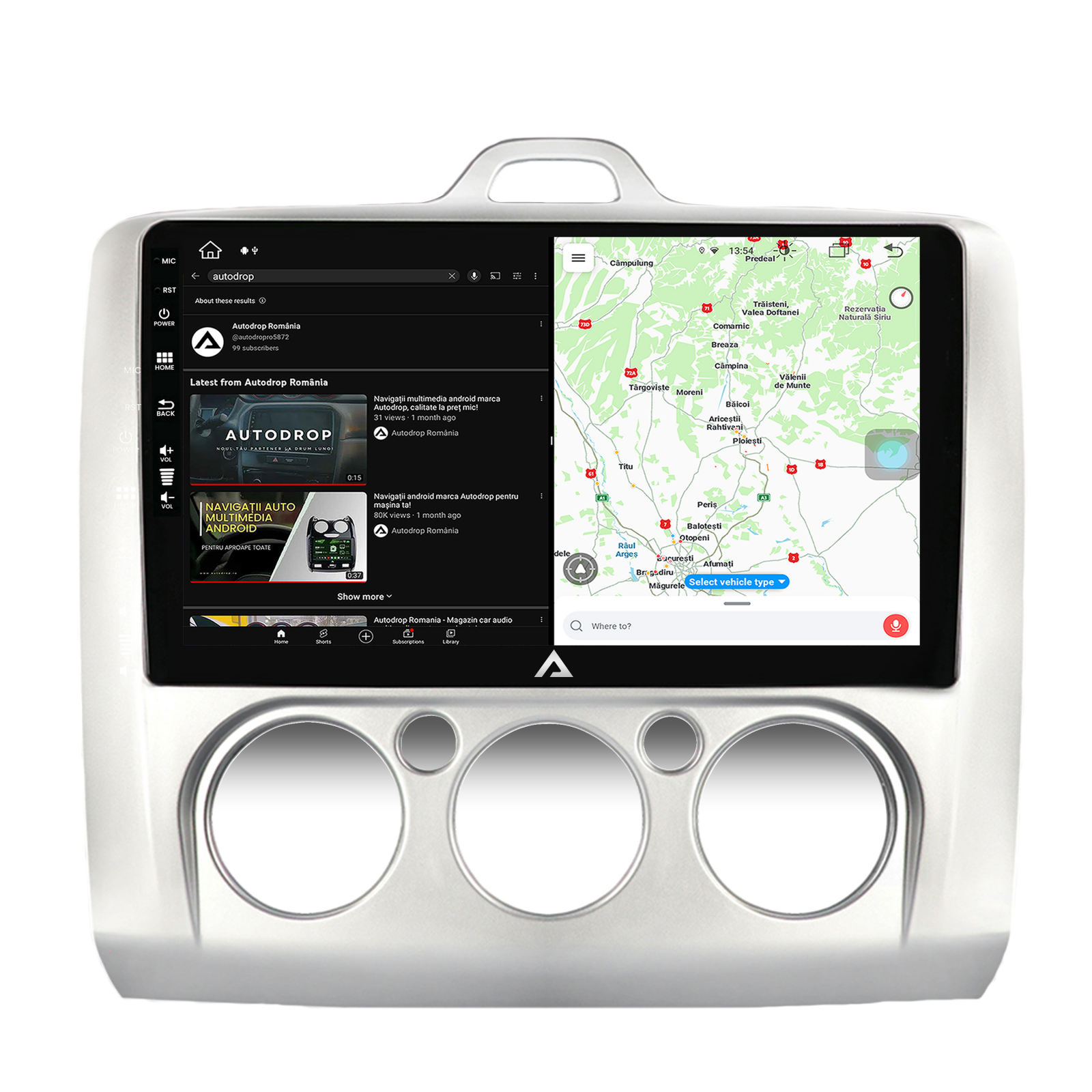 Navigație Android Dedicată pentru Ford Focus MK2 2004-2011 cu clima manuala. Sistem dedicat cu procesor Octacore cu 4GB RAM și 64GB Memorie interna, egalizator DSP, Carplay și Android Auto, GPS Online și Offline și multe altele.