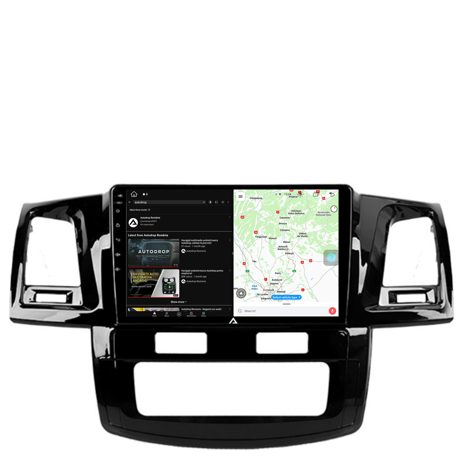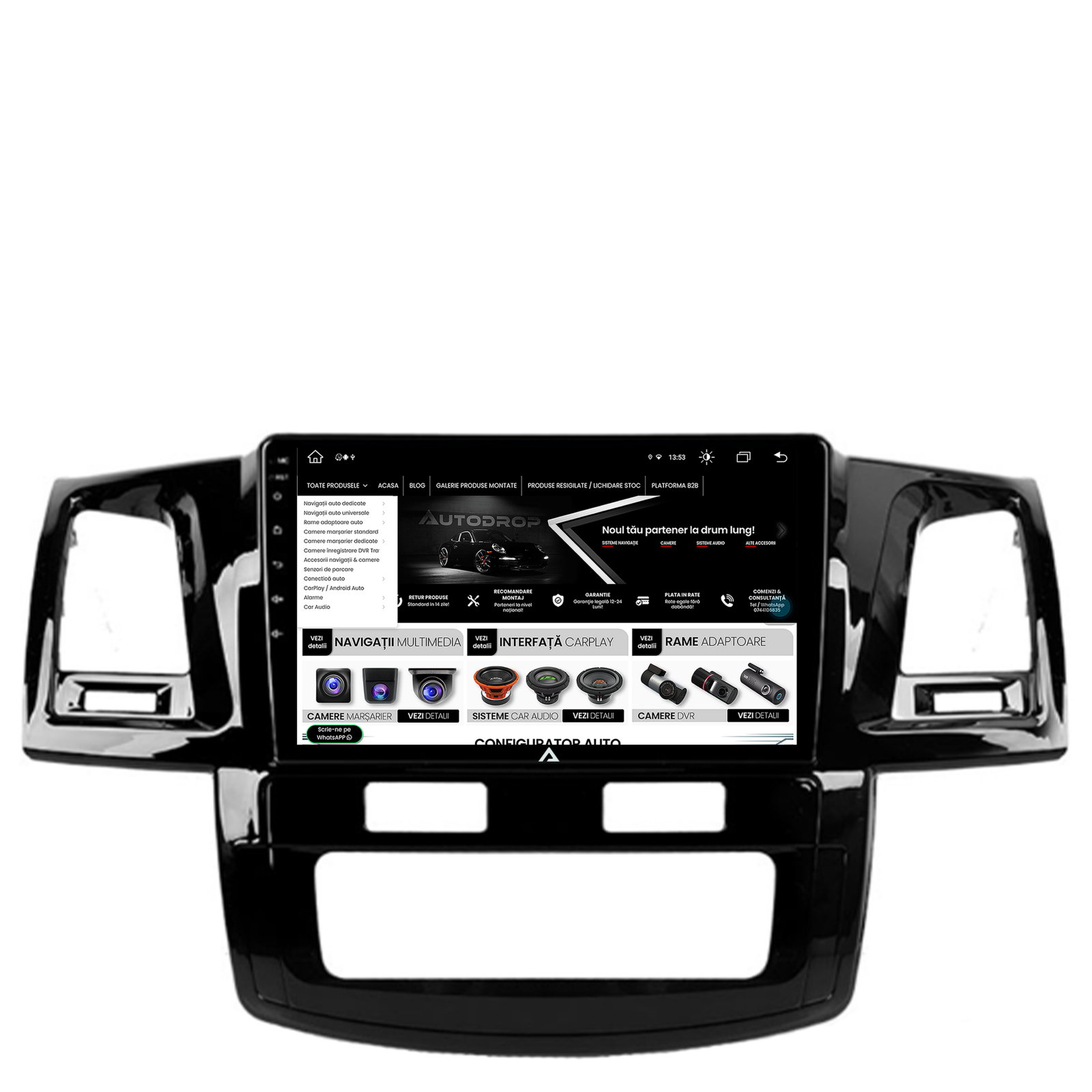 Navigație Auto Dedicată pentru autoturismul Toyota Hilux de la 2008 pana la 2014. Acest sistem prezinta plansa completa de incadrare si conectori special de conectare. Configuratie premium cu 8GB RAM si 256GB ROM cu Internet, GPS, Bluetooth, Carkit telefon, Camera marsarier si multe altele!