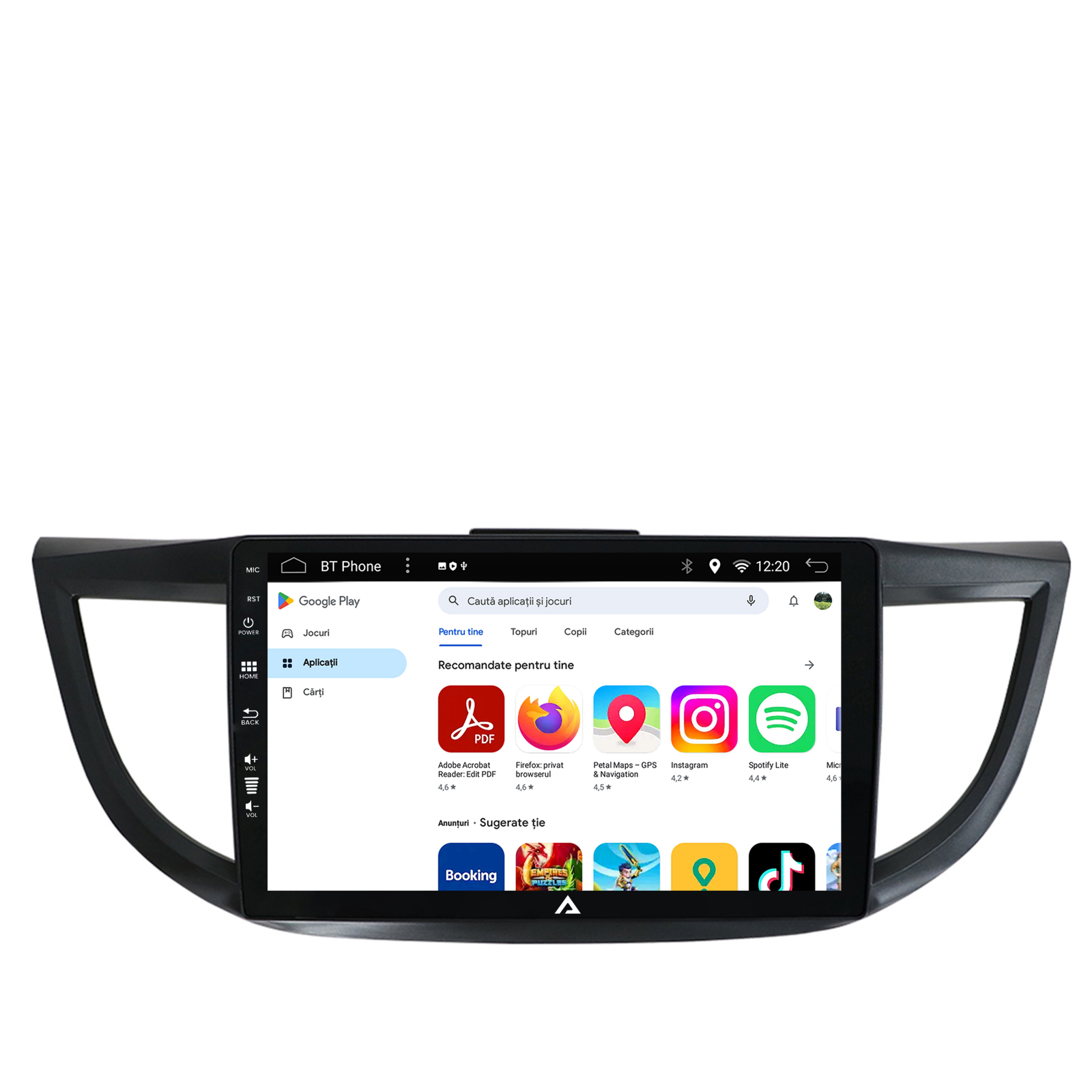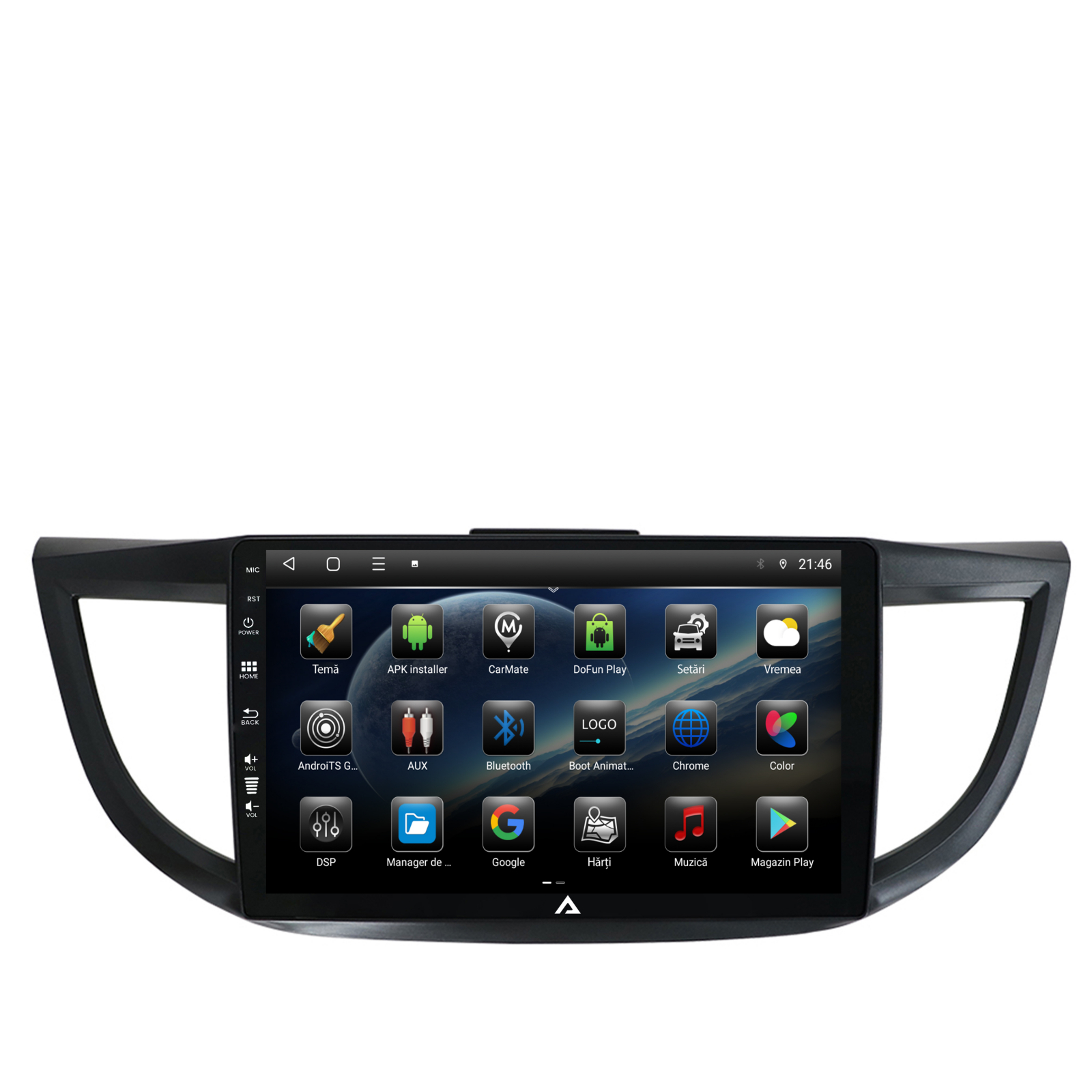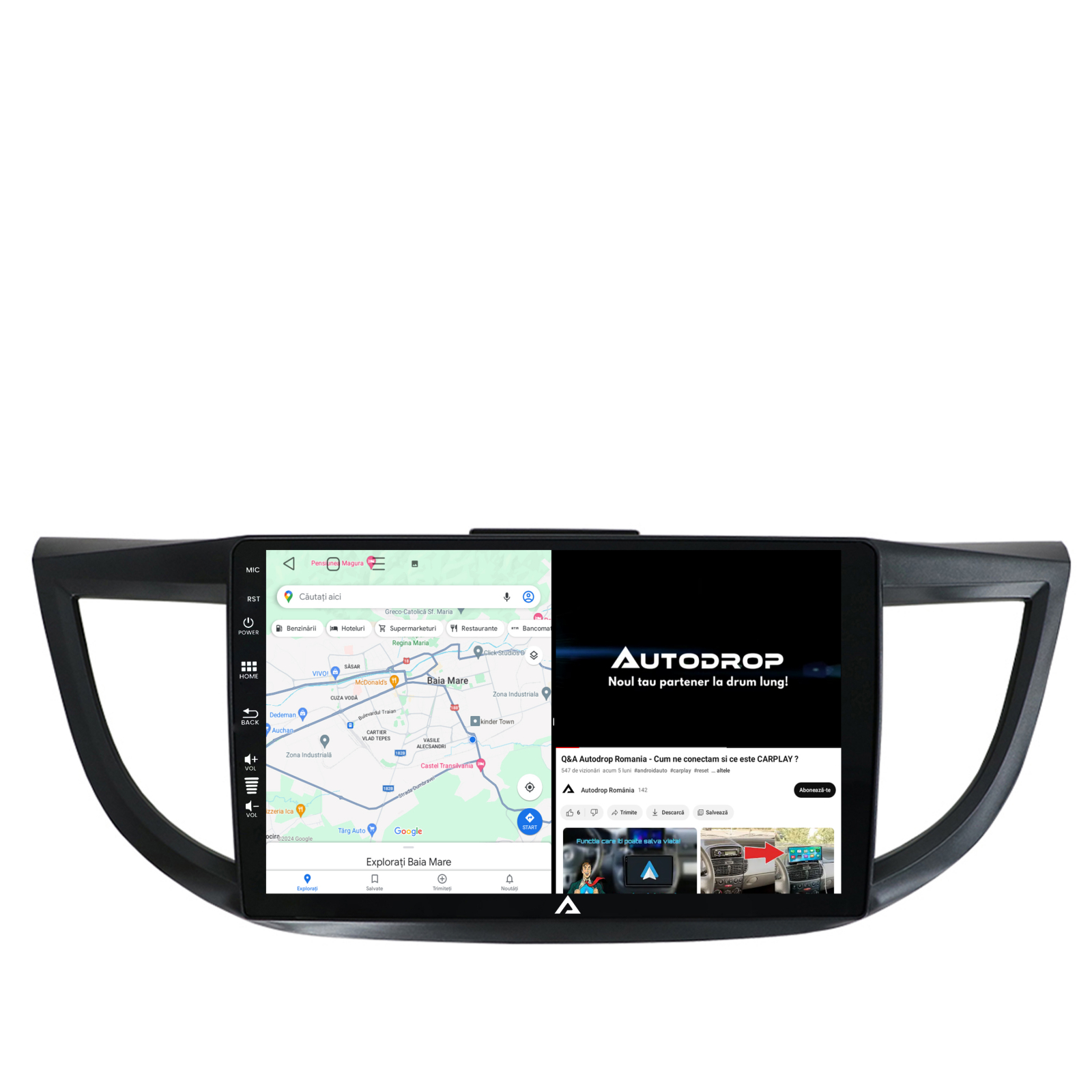 Navigație Android Dedicată pentru Honda CRV model intre 2011 și 2016. Sistemul cu Android 12 din seria AD-BGE aduce noutăți noi precum Carplay și Android Auto Wireless, Internet, GPS, Posibilitate Camera Marșarier și Camera Trafic DVR și multe altele.