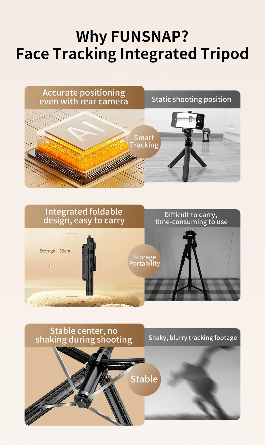 FunSnap FUNSNAP A6 AI Felismerés Intelligens Követő Gimball, 360 fokos követés, mobilfotózás, élő közvetítés, rázkódásgátló tartó
