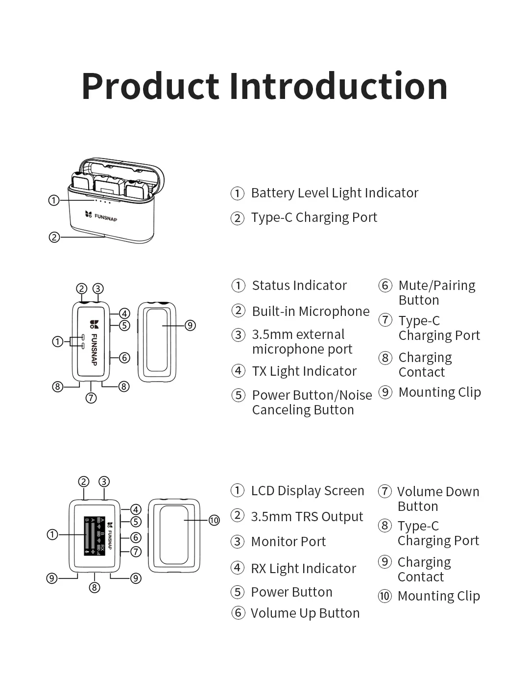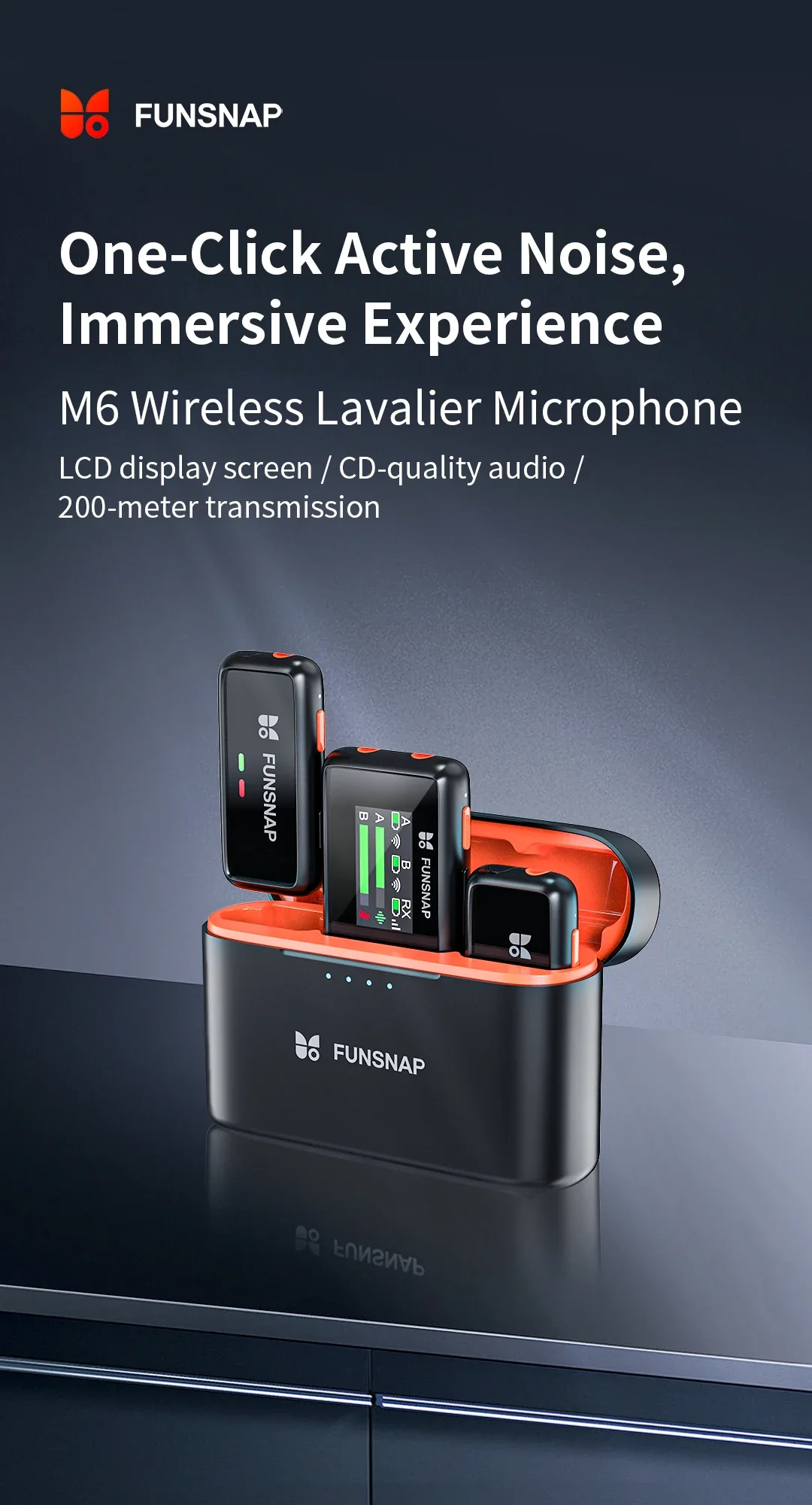 unsnap M6 Vezeték nélküli Lavalier Mikrofon, Fekete, Töltőtok, LCD Kijelző, Zajcsökkentés, Kompatibilitás: iPhone, iPad, Android, DSLR, PC