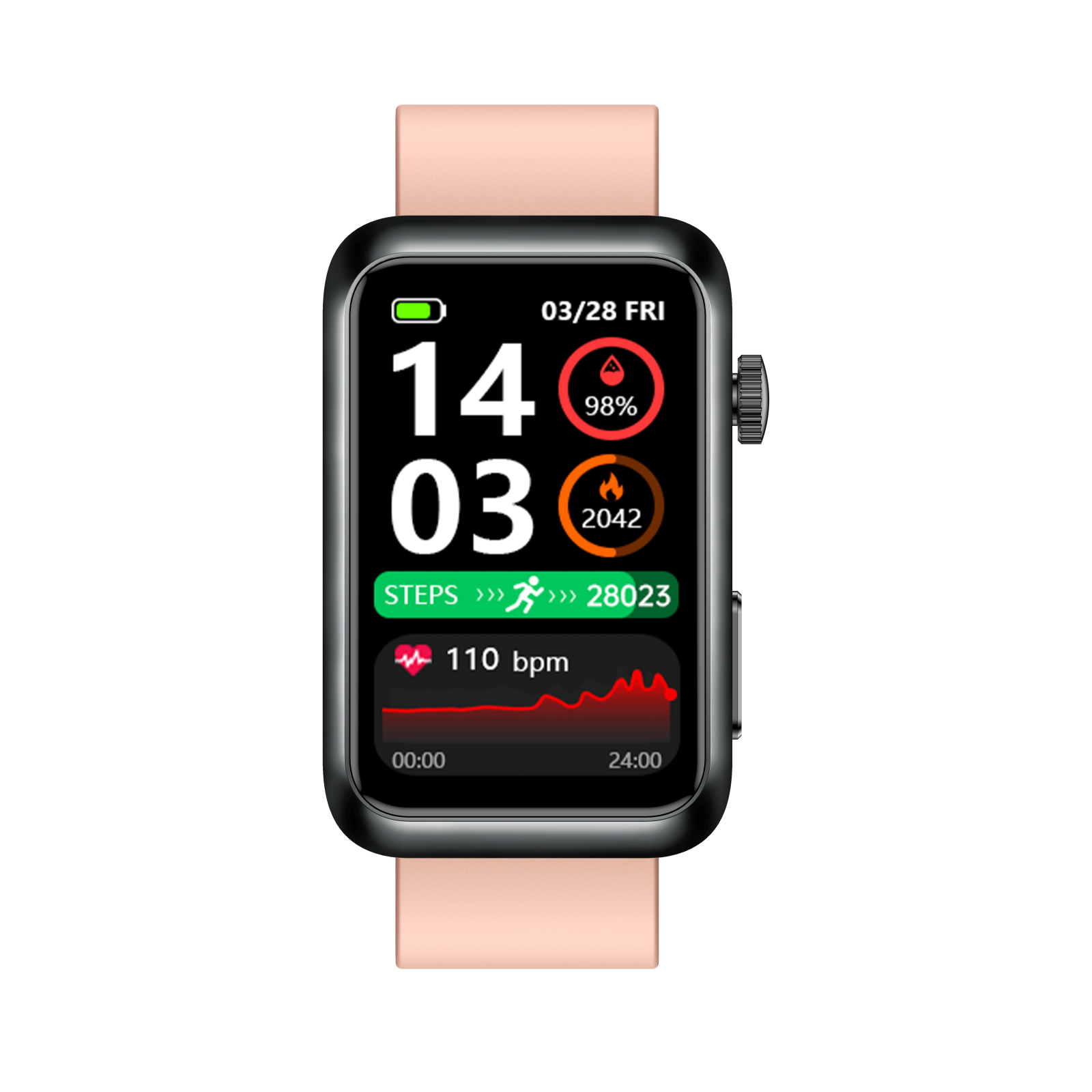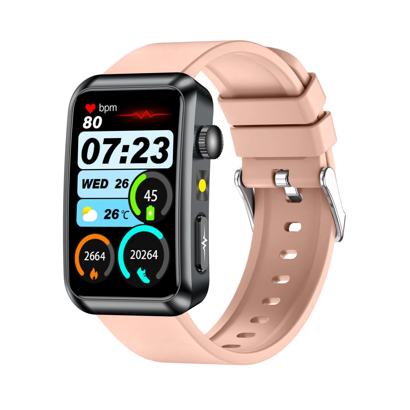 iSEN iSEN TK77 Okosóra Rózsaszín, Szilikon, 1.57" HD, EKG, Mikro-Vizsgálat, Vércukor, Húgysav & Zsír Kockázat, BT Hívás, Hangasszisztens, Zseblámpa, SOS, 250mAh