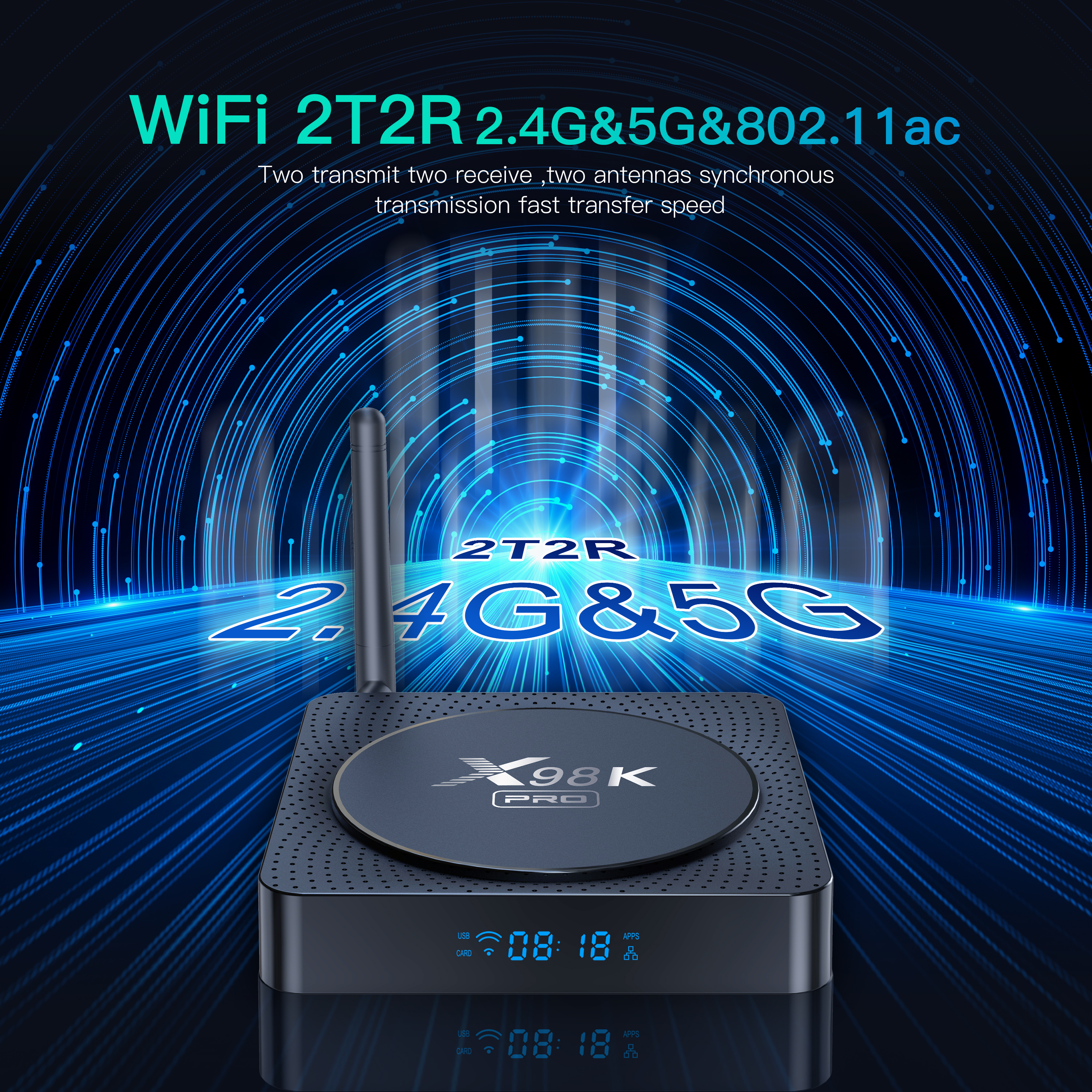 TV Box iSEN X98K Pro, 4K, Android 11, HDR10+, 4GB RAM, 32GB ROM, RK3566, DLNA, Miracast, AirPlay, WiFi 2.4G/5G, BT 5.0, HDMI 1.4/2.0, AUDIO OUT, SPDIF, Ethernet, Micro SD