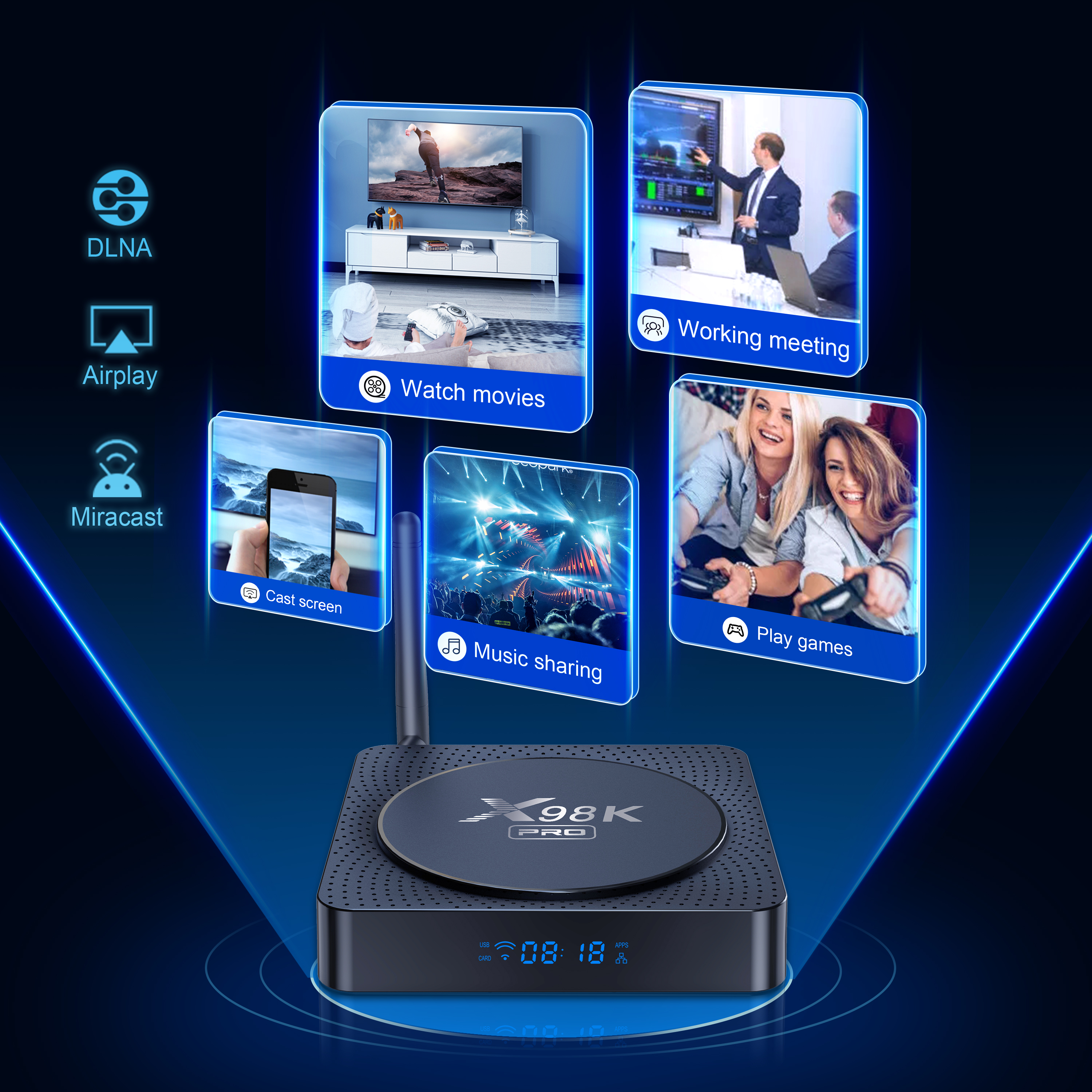 | Egyéb | DLNA, Miracast, AirPlay |