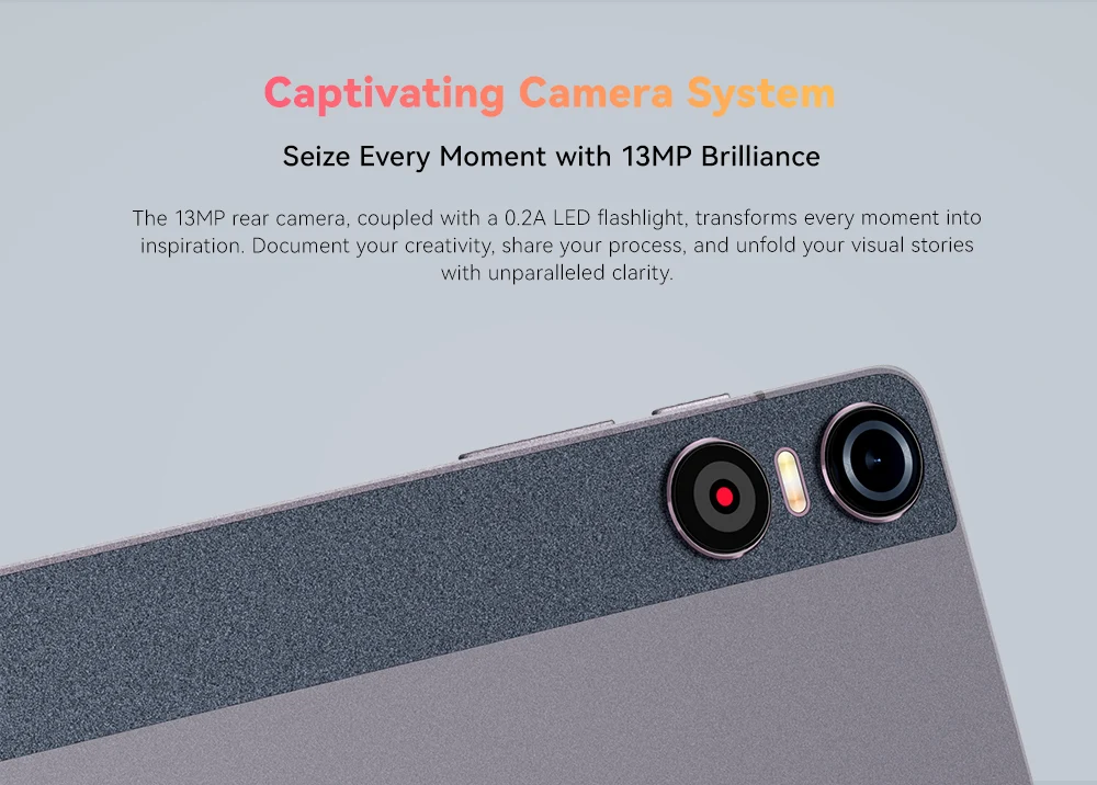 Experience a new dimension of audio with TAB 50's four 1217 Speaker Boxes, delivering immersive 3D stereo sound. Elevate your entertainment with unparalleled depth and clarity at every moment. 16GB RAM + 256GB ROM