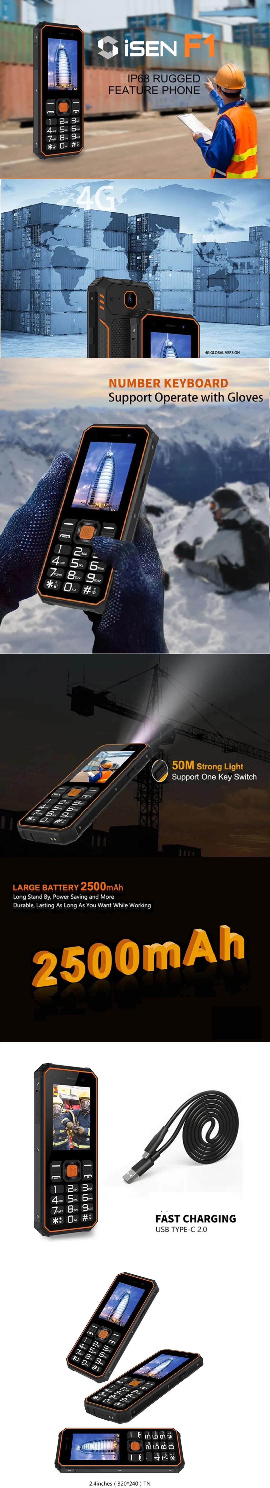 iSEN F1 mobiltelefon, Narancssárga, 4G, 2.4" LCD, 0.3MP hátlapi + 0.08MP előlapi, 48MB RAM, 128MB ROM, Mocor OS, Unisoc T107, IP68, QWERTY, Zseblámpa, 2500mAh, Dual SIM