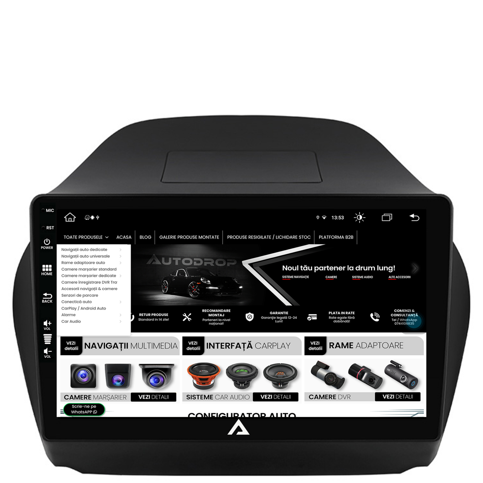 Navigație Android Dedicată pentru Hyundai IX35 cu 8GB RAM și 256GB ROM. Unitate multimedia premium cu procesor octacore permite funcții noi precum Internet, GPS, Bluetooth, USB, AUX, Posibilitate Camera Marșarier și Camera Trafic DVR.