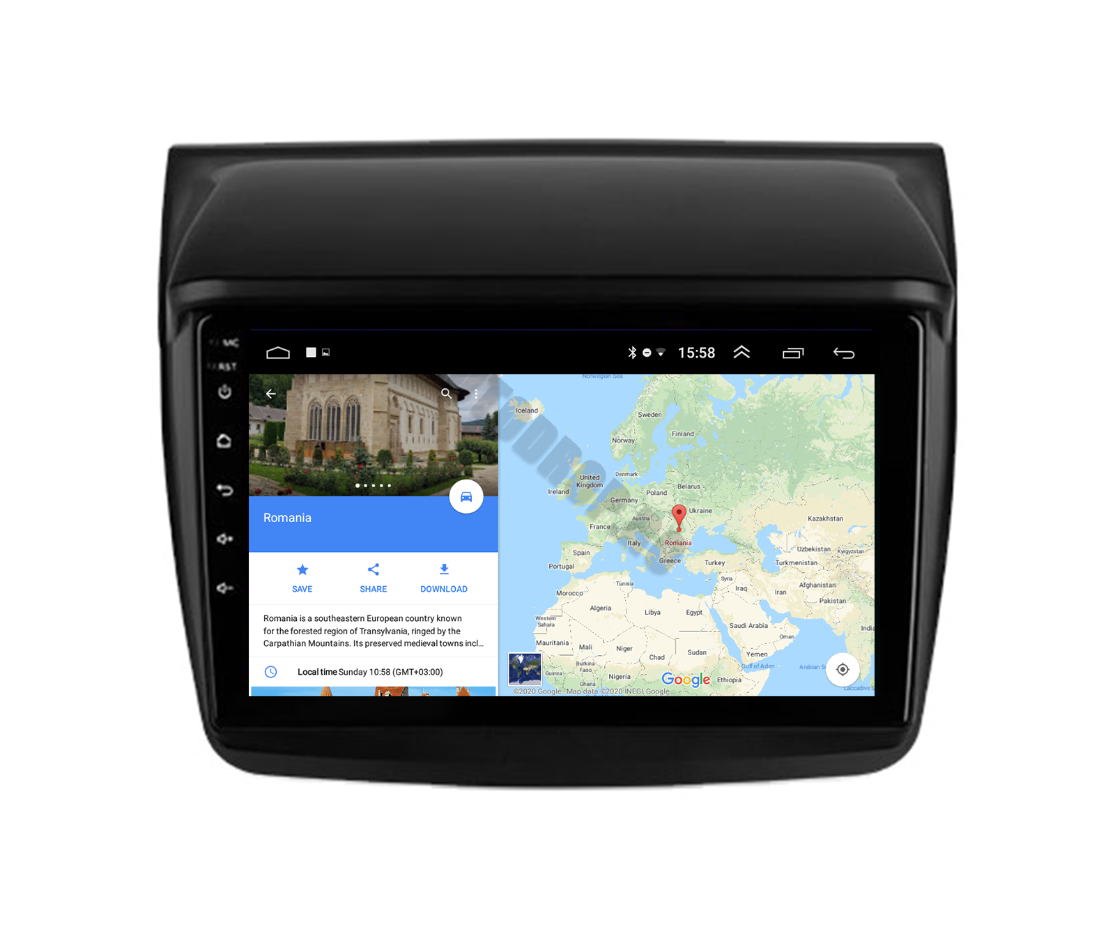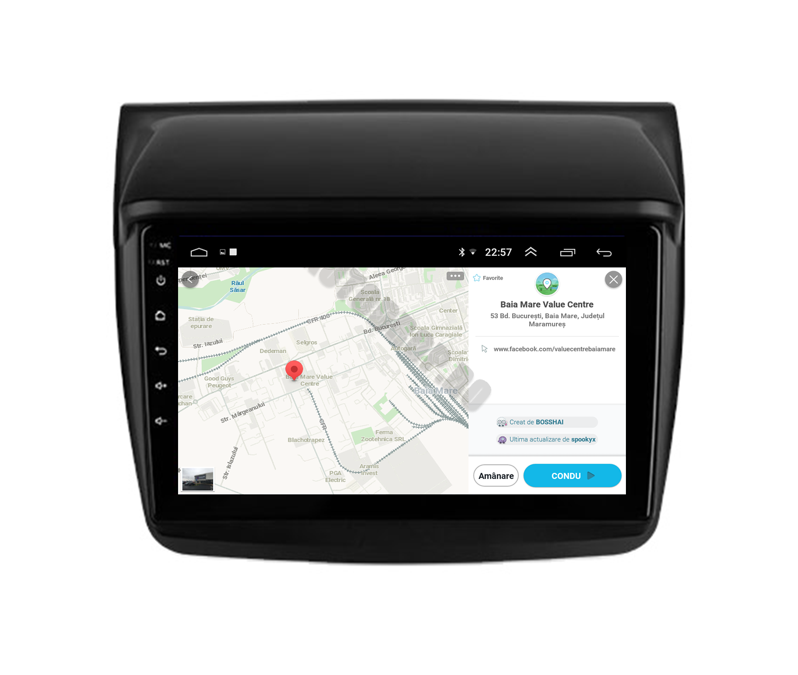 Suport online și offline pentru Navigatia GPS, susține Hărti 3D și îndrumare vocală în diverse limbi disponibile, majoritatea deja setate în limbă romană.