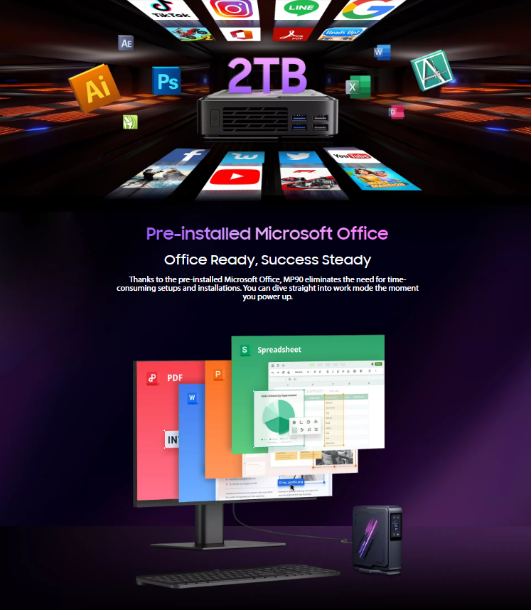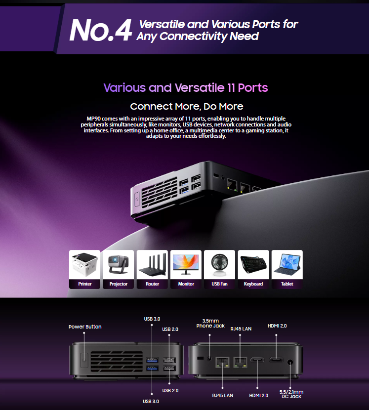 | 1x Mini PC MP90 1x Alimentator 1x HDMI 1x VESA |
